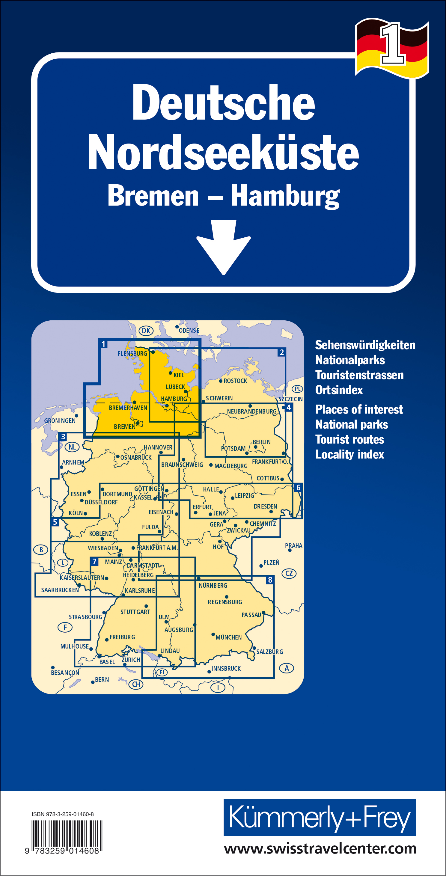 | Schlagworte | Autokarte • Bremen • Bremen - Hamburg • Bremerhaven • Deutsche Nordseeküste • Deutschland • Flensburg • Hamburg • Kiel • Kümmerly + Frey • Lübeck • Nordseeküste, Karte • Nordseeküste; Karten • Nr.01 • Regionalkarte Deutschland Nr. 1 • Regional Map Germany No 1 • Reisekarte • Strassenkarte • Straßenkarte • Strassenkarte Nordseeküste • Touristenstrassen |