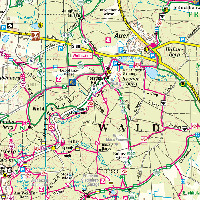 Durch die Darstellung der naturkundlichen, geologischen und historischen Informationen wird der Kartennutzer auf die großen und kleinen Sehenswürdigkeiten rechts und links des Weges aufmerksam gemacht.