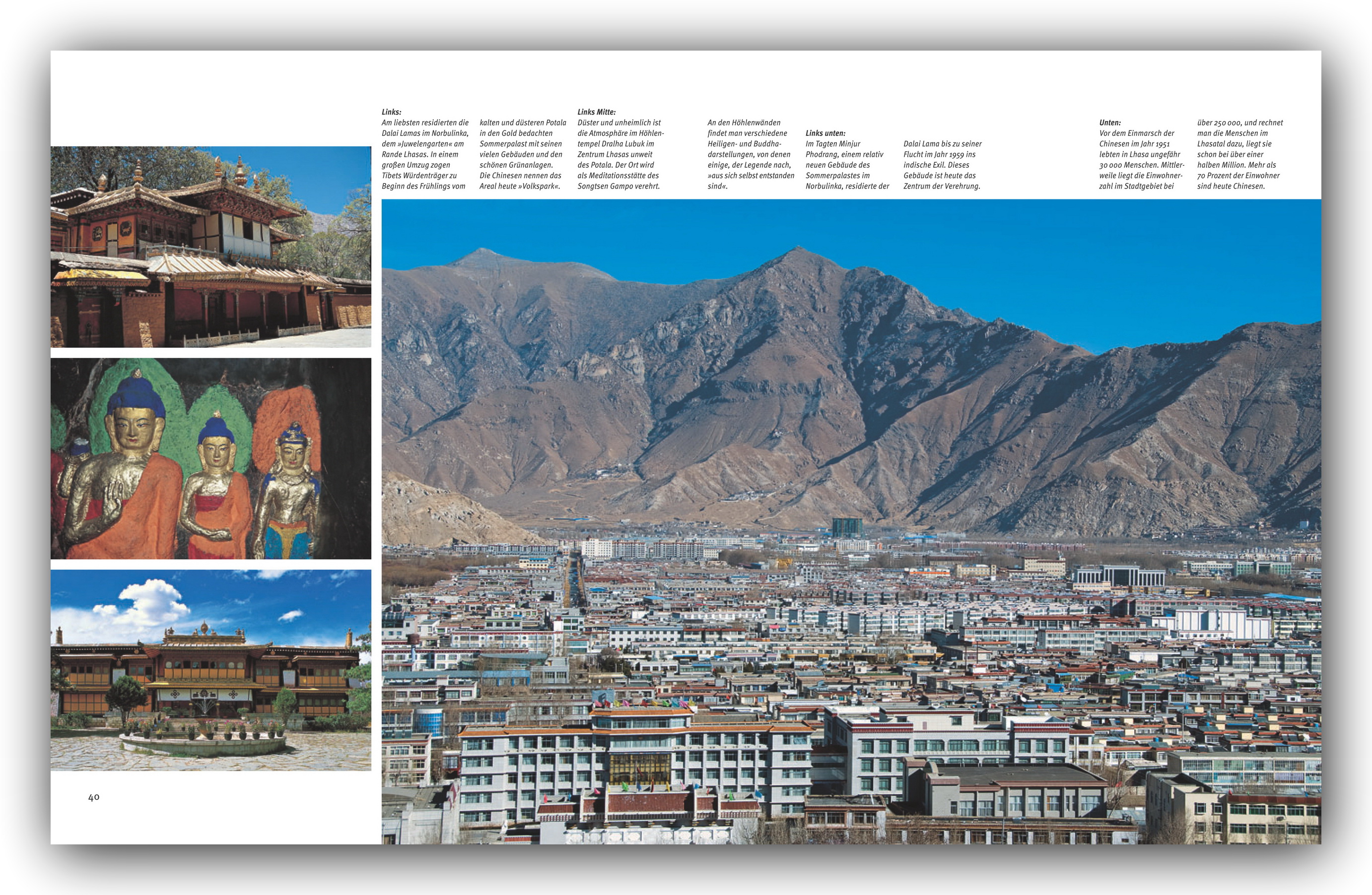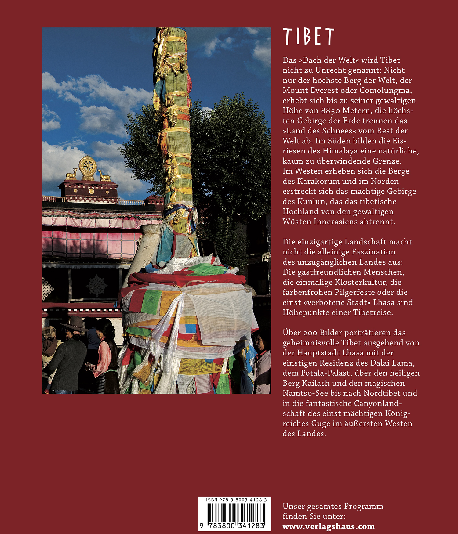 Über 210 Bilder zeigen diese faszinierende Region in all ihren Facetten. Vier Specials berichten über den heiligen Berg Kailash, die Dalai Lamas, den tibetischen Buchdruck und die Thangkamalerei sowie die farbenfrohen Feste.