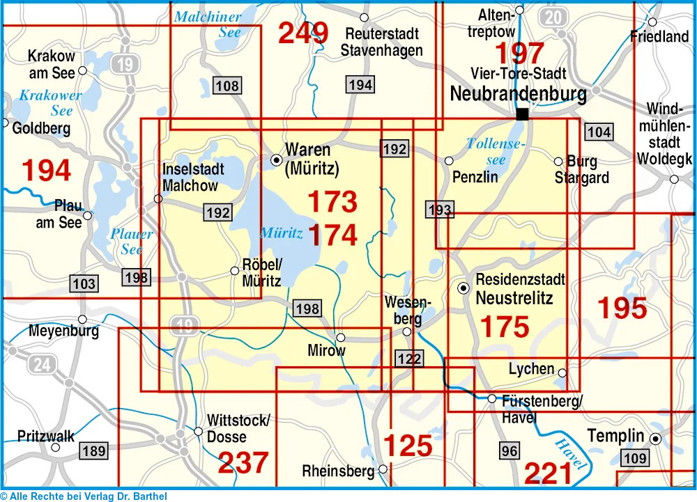 | Schlagworte | Blankensee • Kieve • Klink • Malchow • Müritz, Karte; Radkarte • Müritz, Karte; Wanderkarte • Müritz; Radkarten • Müritz; Wanderkarten • Priborn • Torgelower See • Wulkenzin |