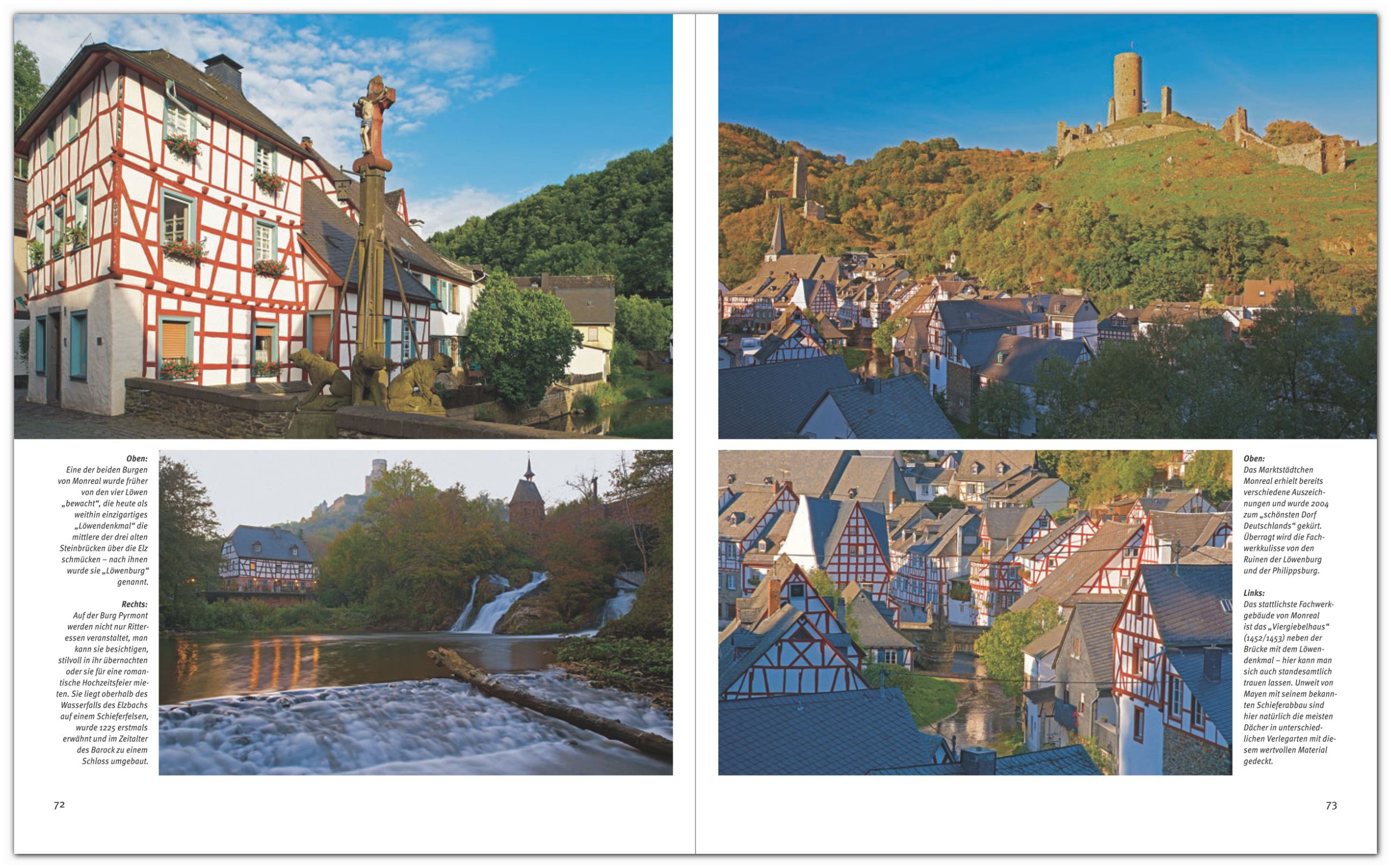 Rund 200 Bilder zeigen die ganze Vielfalt der Eifel. Vier Specials berichten über die Krimilandschaft Eifel, den vielfältigen Naturraum, den legendären Nürburgring sowie von Heiligenhäuschen und Trutzburgen - die Kulturlandschaft der Region.