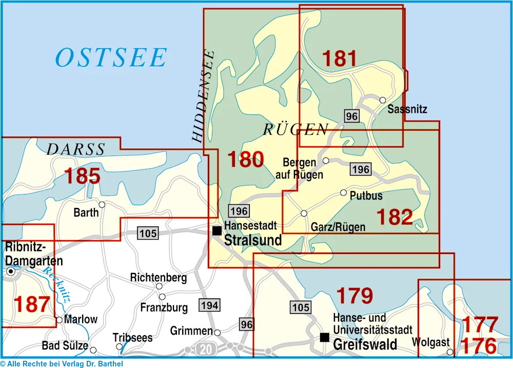 | Schlagworte | Europäischer Fernwanderweg E10, IVV-"Rügenkreide erleben", Ostseeküsten-Radweg • Großer Jasmunder Bodden, OSTSEE Nationalpark Jasmund. Biosphärenreservat Südost-Rügen • Insel Hiddensee, Schaprode, Wiek, Dranske, Altenkirchen, Putgarten, Neuenkirchen, Rappin, Trent, Gin • Insel Hiddensee, Schaprode, Wiek, Dranske, Altenkirchen, Putgarten, Neuenkirchen, Rappin, Trent, Gingst, Kluis • Königsstuhl, Kap Arkona, Deutsches Meeresmuseum, Nautineum, Ozeaneum, Europäischer Fernwanderweg E9 • Lancken-Granitz, Ostseebad Thiessow, Ostseebad Baabe, Gager, Sehlen, Buschvitz, Parchtitz • Lieschow, Ummanz, Öhe, Fährinsel, Gellen, Neubessin, Altbessin, Hiddensee, Dornbusch, Zickersche Ber • Lieschow, Ummanz, Öhe, Fährinsel, Gellen, Neubessin, Altbessin, Hiddensee, Dornbusch, Zickersche Berge • Lietzow, Lohme, Ostseebad Binz, Zirkow, Ostseebad Sellin, Ostseebad Göhren, Middelhagen • Mönchgut, Granitz, Schaabe, Lebbin, Liddow, Jasmund, Stubnitz, Schmale Heide, Wittow, Bug, Pieckberg • Nationalpark Vorpommersche Boddenlandschaft, Vilm, Zudar, Dänholm, Liebitz, Heuwiese, Drigge • Östlicher Backstein-Rundweg, Rundweg Fischland-Darß-Zingst, Rügen-Rundtour • Radfernweg Hamburg-Rügen, D-Netz-Route 2, EuroVelo-Route R10 • Rügen, Karte; Radkarte • Rügen, Karte; Wanderkarte • Rügen; Radkarten • Rügen; Wanderkarten • Sassnitz, Bergen auf Rügen, Putbus, Garz/Rügen, Hansestadt Stralsund, Zarrendorf, Wendorf, Sundhagen • Seebad Breege-Juliusruh, Mukran, Stubbenkammer, Prora, Strelasund, Kleiner Jasmunder Bodden • Ummanz, Dreschvitz, Samtens, Rambin, Altefähr, Gustow, Poseritz, Glowe, Sagard, Patzig, Ralswiek |