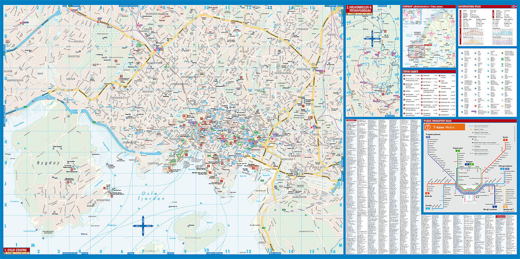 Unsere folienbeschichtete und gefaltete Borch Map von Oslo in der 7. Auflage beinhaltet: Oslo Innenstadt 1:11 000, eine Detailkarte vom Gebiet Holmenkollen und Tryvannshogda 1:25 000, Oslo und Umgebung 1:200 000, West-Norwegen 1:800 000, das öffentliche Verkehrsnetz und eine administrative Übersichtskarte von Norwegen mit Zeitzonen. Borch Maps beinhalten eine Vielzahl interessanter und nützlicher Informationen wie Top Sights, Museen, Monumente, Märkte und viele weitere Sehenswürdigkeiten, aber auch Statistiken, Umrechnungstabellen, Klimadiagramme und viele detailreiche Übersichtskarten, die eine Borch Map zu einem exzellenten Reisebegleiter machen. Kartenformat (offen): 990 x 494 mm.