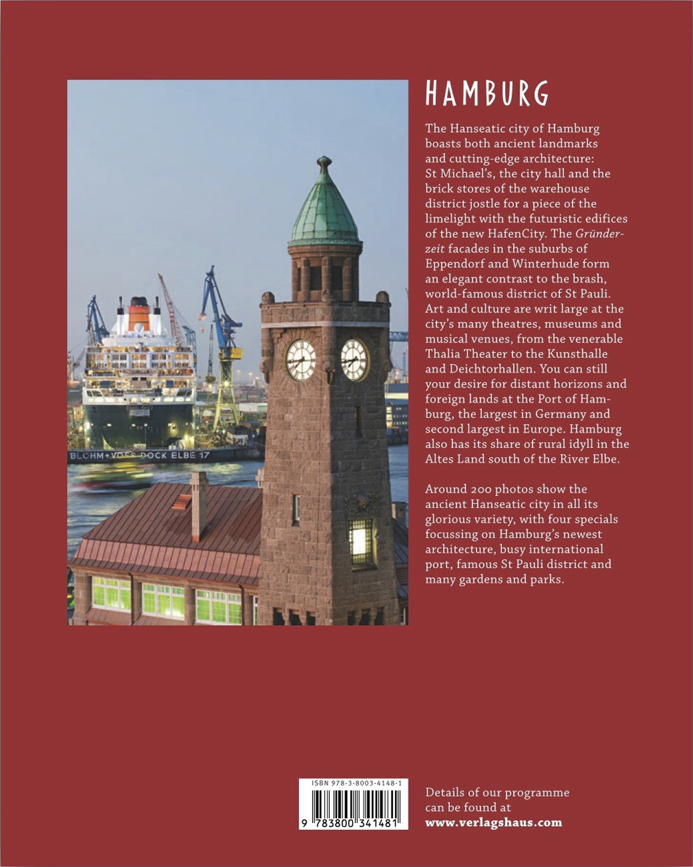 | Schlagworte | Alster • Altona • Bildband • Burchardkai • Deichtorhallen • Elbe • Elbphilharmonie • Finkenwerder • Fischmarkt • Goldbekkanal • Große Freiheit • Hafen • Hafencity • Hamburg • Hamburg; Bildband • Hansestadt • Hansestadt Hamburg • Harburg • Landungsbrücken • MICHEL • Oevelgönne • Ottensen • Övelgänne • Reeperbahn • Reisebildband • Speicherstadt • St. Michaelis • St. Pauli • Winterhude |