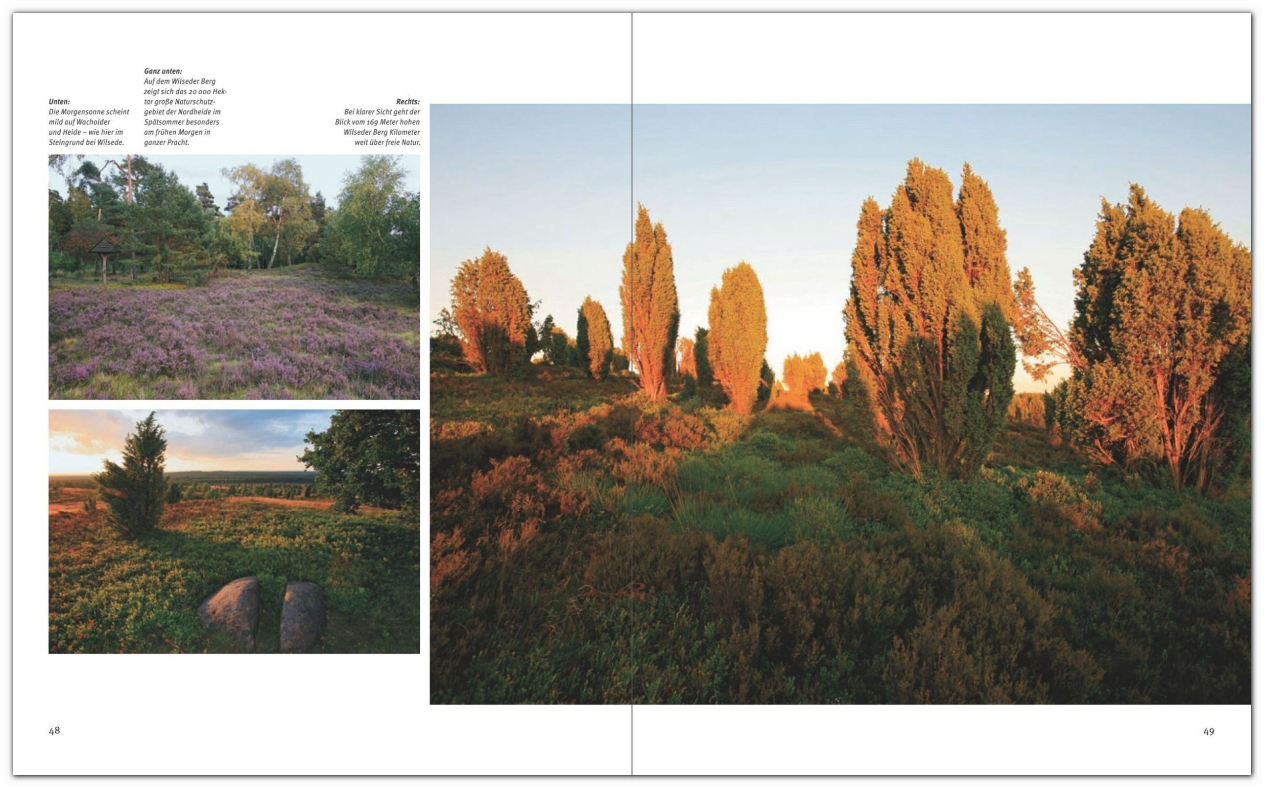 Rund 200 Bilder zeigen die ganze Vielfalt der Lüneburger Heide. Vier Specials berichten über die Geschichte der Hansestadt Lüneburg, die Dichter der Heide, kulinarische Besonderheiten der Region und über die landschaftsprägende Heidschnucke.