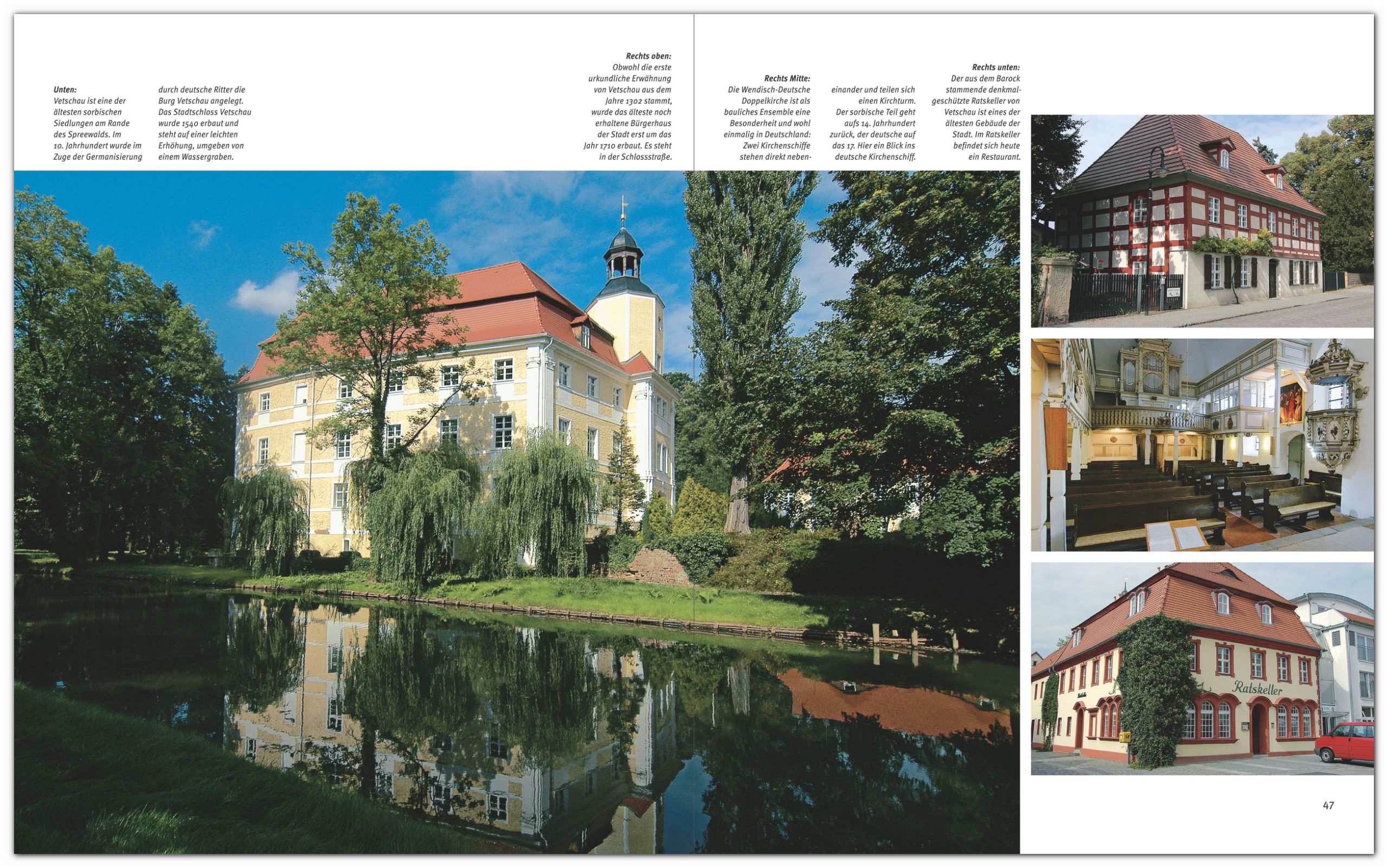 Neben der urwüchsigen Natur locken aber auch Schlösser und Kirchen, Heimatmuseen und Ausflugslokale in die Auenlandschaft, die sich am besten vom Wasser, auf einer der traditionellen Kahnfahrten erleben lässt. Die originalgetreu nachgebaute Slawenburg Raddusch erzählt von der Frühzeit der Besiedlung, im supermodernen Badezentrum „Tropical Islands“ genießt man Südsee-Klima unter dem Dach der ehemaligen Cargolifter-Werfthalle. In dieser Region im südlichen Brandenburg hat der Volksstamm der Sorben sein Brauchtum und seine Kultur bewahrt. Auf zahlreichen Dorffesten begegnet man noch den historischen Trachten und Bräuchen wie dem „Hahnrupfen“ und „Stollenreiten“.