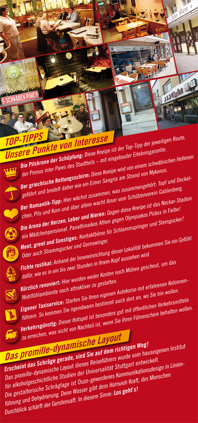 Übersichtlich geordnet und gestaltet auch für den Promille getrübten Blick