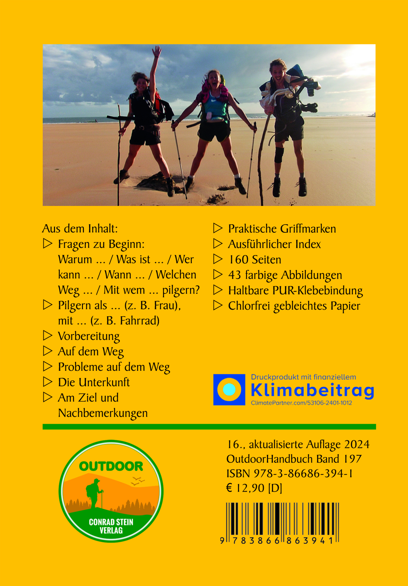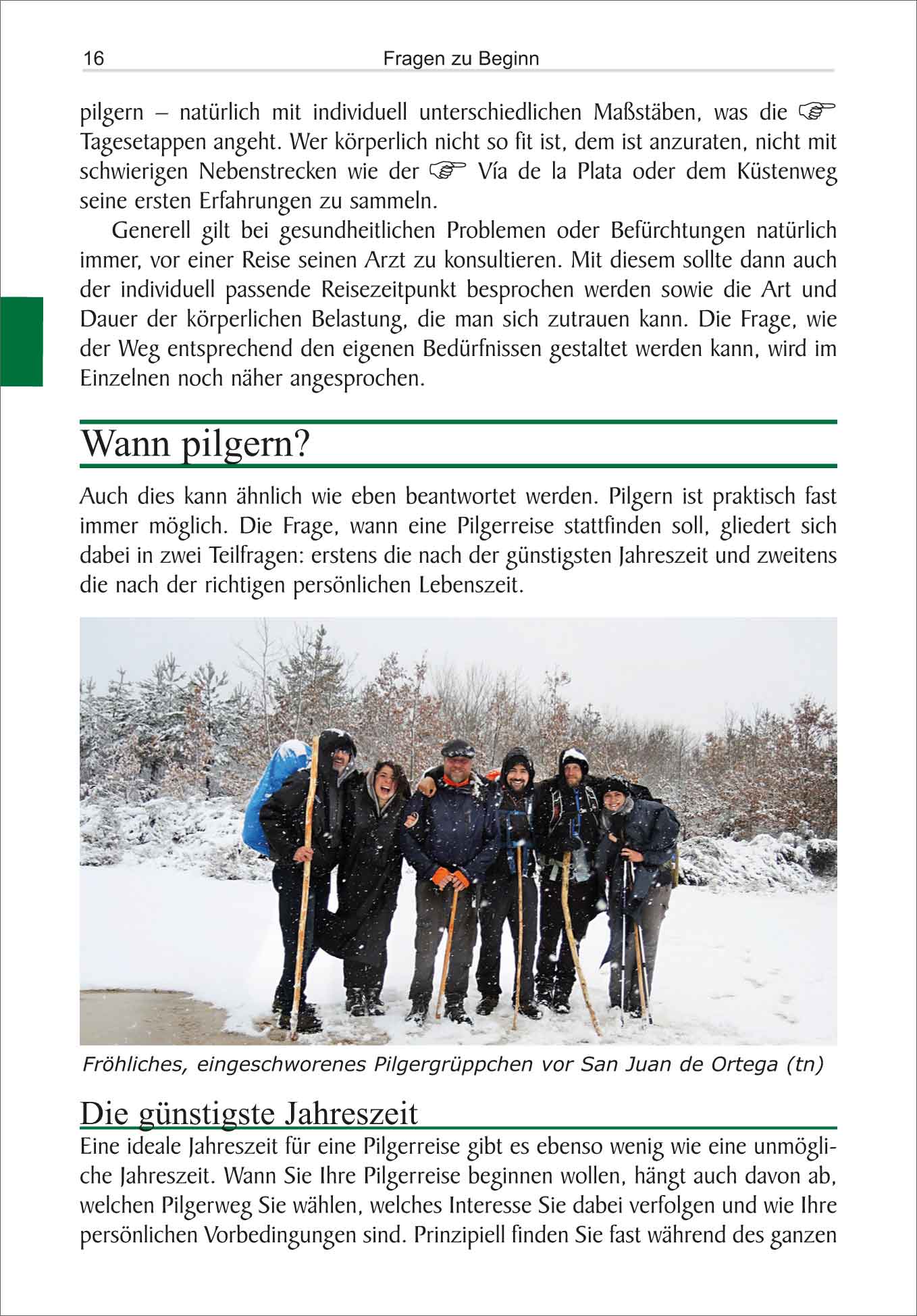 Fragen zu Beginn, Pilgern als/mit, Vorbereitung, Auf dem Weg, Probleme auf dem Weg, In der Unterkunft, Am Ziel und Nachbemerkungen.