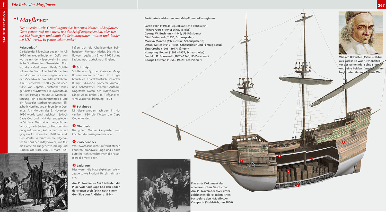 Infografiken zeigen u.a. den Nordosten der USA auf einen Blick, wie ein Quilt entsteht und Eliteschmieden. Einzigartige 3D- Darstellungen geben einen lebendigen Einblick in die USS Nautilus, die Mayflower und erklären anschaulich die Konstruktion der Brooklyn Bridge sowie das geologische Profil der Niagara Falls. Die Baedeker-Tipps verraten warum es sich lohnt, für die New Yorker Attraktionen Tickets online zu bestellen, wie man alte Hippie-Seligkeit wieder aufleben lassen kann, und wo man das beste Kaffee mit Aussicht in den White Mountains findet.