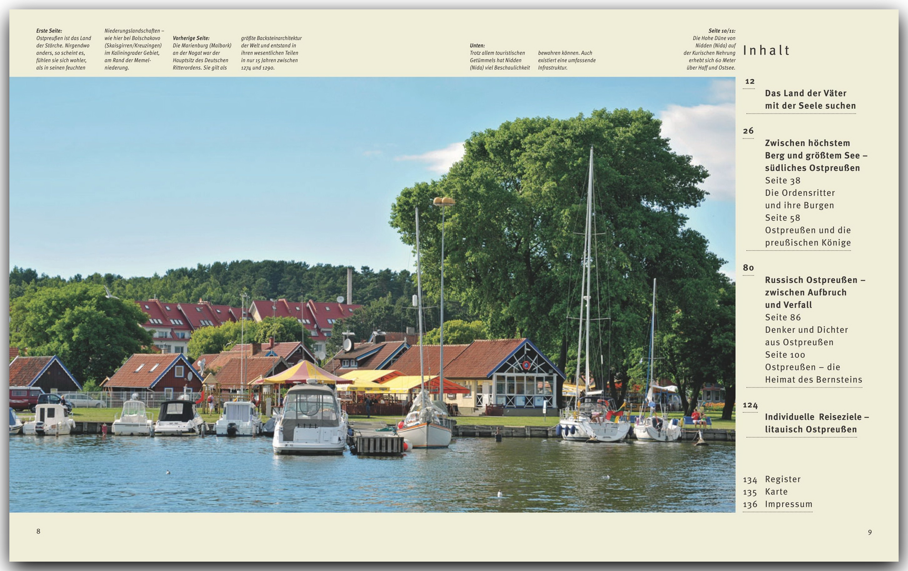 Ostpreußen, das Land der dunklen Wälder, kristallenen Seen und der weiten Küste ist wieder zu einem erreichbaren und einzigartigen Reiseziel geworden. Das Buch zeigt in neuen Fotografien den Zauber seiner Landschaften - die geheimnisvolle Schönheit der Masurischen Seen, die Kurische und die Frische Nehrung mit ihren Dünen und den alten Badeorten. Diese Vielfalt bietet auch heute noch Lebensraum für Störche und Elche, die zu den Wahrzeichen Ostpreußens zählen.Die Städte und Dörfer des Landes, deren Kirchen, Burgen, Schlösser und Herrenhäuser erzählen von der wechselvollen Geschichte. Nach der Zerstörung im Zweiten Weltkrieg haben viele Orte und Bauwerke ihr altes Gesicht wieder erhalten, so auch die Marienburg, die in alter Größe über der Nogat wacht, oder Elbing, in dem die alten Bürgerhäuser wieder erstanden sind.Über 200 Fotografien geben ein umfassendes Bild Ostpreußens, von Elbing im Westen bis nach Memel und mit Königsberg im Zentrum. Vier Specials informieren über die Ordensritter, die Dichter und Denker von Immanuel Kant bis Arno Holz, die Preußenkönige und über das Gold Ostpreußens, den Bernstein.REISE DURCH ... ist eine Bildband-Reihe professionell fotografiert von renommierten Reisefotografen - - - Bis zu 230 Bilder auf 128 bis 140 Seiten - - - Sensationell günstiger Preis - - - Alle wichtigen Sehenswürdigkeiten - - - Kultur und Traditionen - - - Kenntnisreiche Texte - - - Ausführliche Bildunterschriften - - - Farbige Übersichtskarte - - - Detailliertes Register.