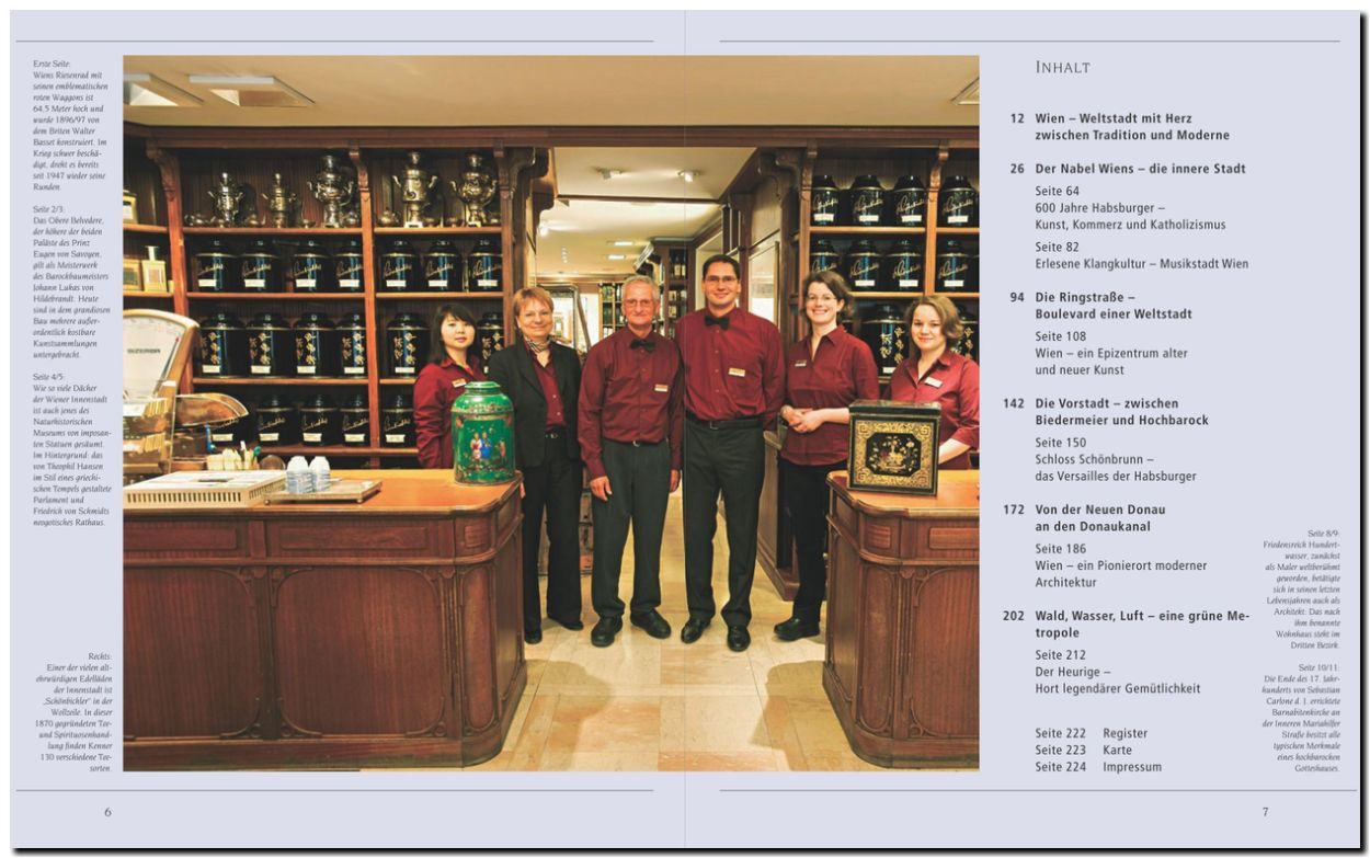 | Schlagworte | Bildband • Burgtheater • Franz-Josef • Heurigen • Hofburg • Hotel Imperial • Hotel Sacher • Hundertwasser • Hunderwasserhaus • Jüdischer Friedhof • Krinzing • Kunsthistorisches Museum • Kursalon • Naturhistorisches Museum • Österreich • Prater • Rathaus • Reisebildband • Riesenrad • Schloss Schönbrunn • Schönbrunn • Sissi • Spanische Hofreitschule • Staatsoper • Stephansdom • Wien • Wien; Bildband • Wienerwald • Zacherl • Zentralfriedhof |