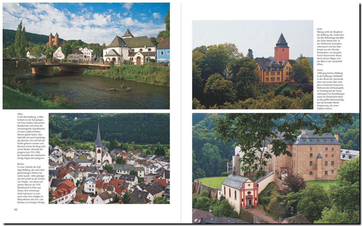 Eingerahmt von Trier im Südwesten, Koblenz im Südosten und Aachen im Nordwesten galt die Eifel lange als terra incognita , als unbekanntes Land. Doch der Vulkanismus hat nicht nur ein abwechslungsreiches Landschaftsbild mit den weithin bekannten Maaren hinterlassen, sondern birgt auch Schätze wie Fossilien, Schiefer, Basalt und Mineralwasser. Von der wechselvollen Geschichte zeugen nicht zuletzt die märchenhafte Burg Eltz, das Schloss Bürresheim, das Kloster Maria Laach und idyllische Fachwerkdörfer wie Monschau und Monreal.