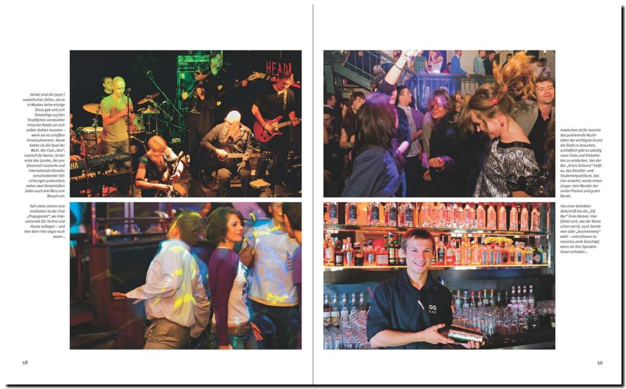 Kaum eine andere Stadt weltweit hat sich in den letzten beiden Jahrzehnten so sehr und so rasend schnell verändert wie Moskau. Aus der postsozialistischen Agonie wurde eine Boomtown, der so manche andere Weltstadt kaum das Wasser reichen kann. Kommen die einen Besucher vor allem wegen Pracht und Prunk der Museen im Kreml, wissen andere die noch jungen Clubs und Bars schätzen: Sie heißen „Propaganda“ oder „Ikra“, russisch für Kaviar, und locken DJs wie Tanzwütige aus der ganzen Welt an.