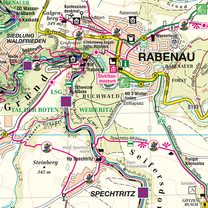Durch die Darstellung der naturkundlichen, geologischen und historischen Informationen wird der Kartennutzer auf die großen und kleinen Sehenswürdigkeiten rechts und links des Weges aufmerksam gemacht.