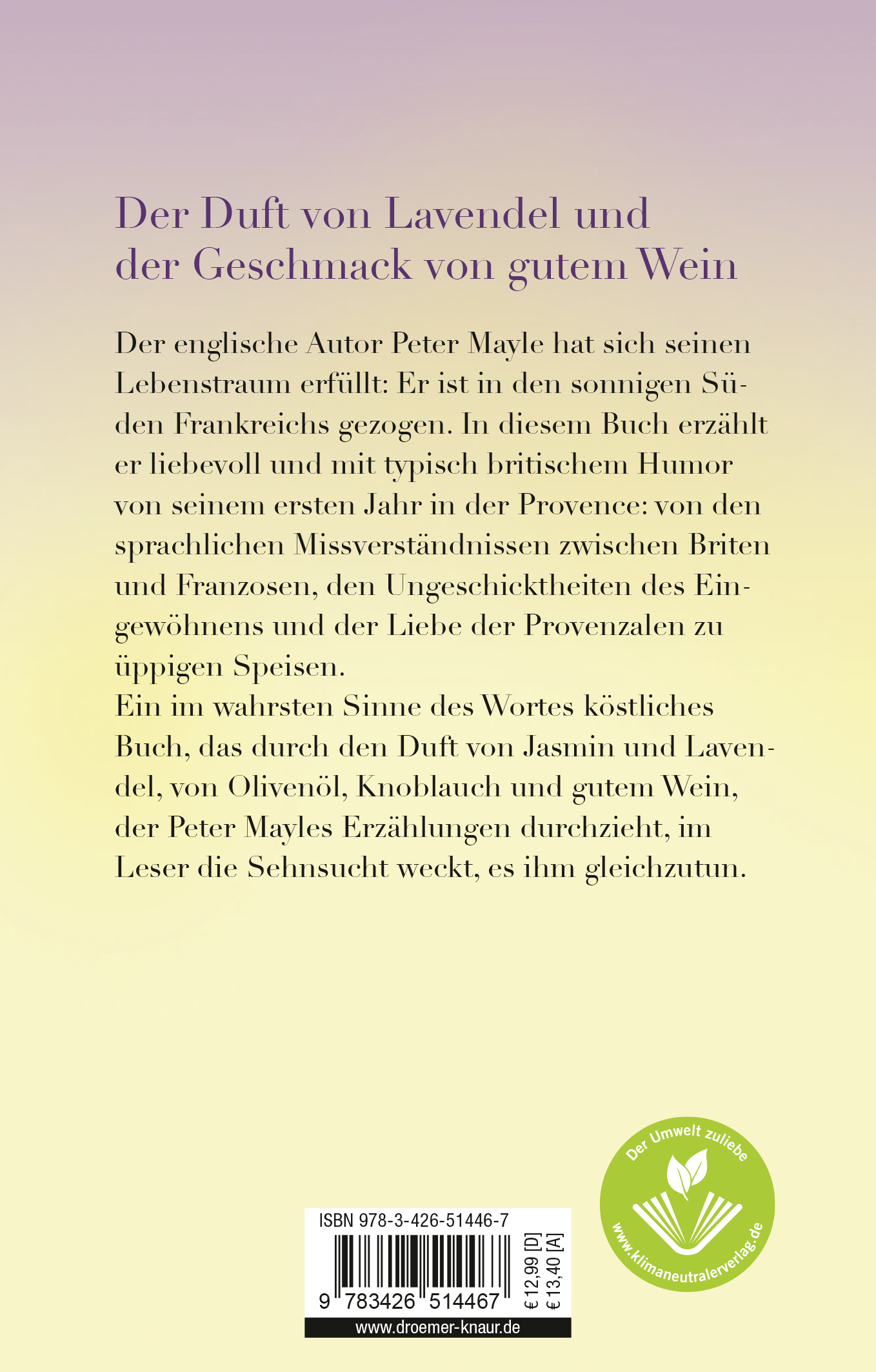 Peter Mayle hat sich seinen großen Traum erfüllt und ist in die Provence gezogen. Doch das erste Jahr ist gar nicht einfach, und immer wieder kommt es zu Missverständnissen - nicht nur, weil man die Sprache dort einfach nicht versteht, sondern auch, weil die Lebensweise der Franzosen so merkwürdig anders als die der Briten ist.