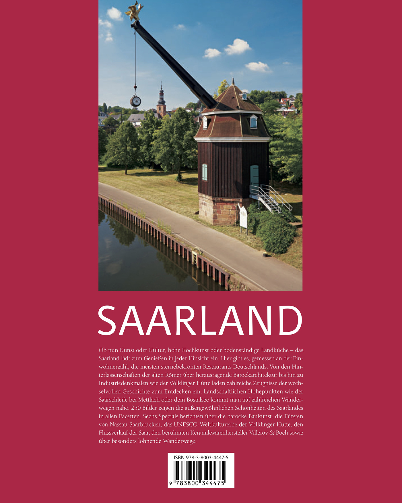 | Schlagworte | Bildband • Blies • Blieskastel • Bostalsee • Dillingen • Dudweiler • Homburg • Kleinblittersdorf • Merzig • Mettlach • Nennig • Neunkirchen • Nied • Ottweiler • Reisebildband • Saar • Saarbrücken • Saarland • Saarland; Bildband • Saarlouis • Sehndorf • St. Ingbert • St. Johann • St. Wendel • Völklingen • Völklinger Hütte • Wustweiler |