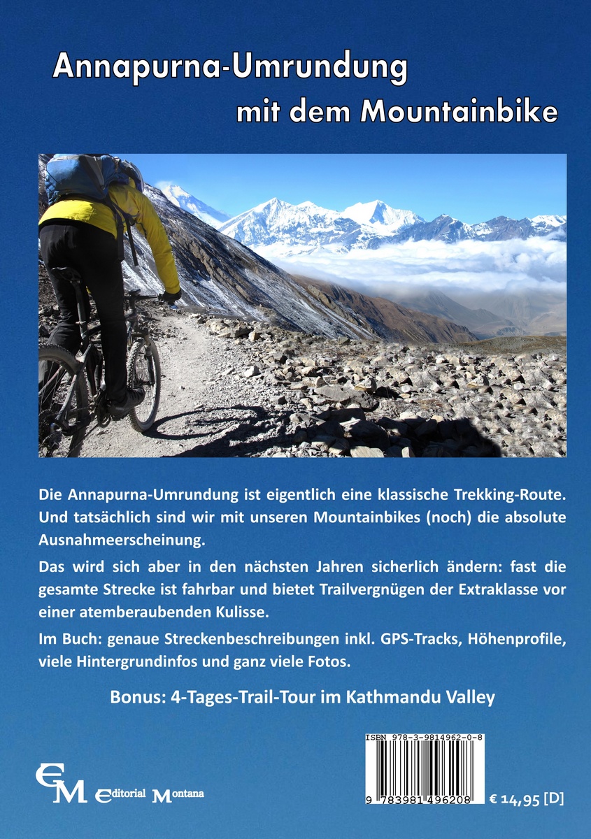 Über die Autoren: Birgit Wenzl und Frank Hartl haben mit ihren Mountainbikes schon die ganze Welt bereist. Die Annapurna-Umrundung und die Tour durch das Kathmandu-Valley sind sie im November 2011 gefahren. Ihre Mountainbikeführer zeichnen sich nicht nur durch gut recherchierte Strecken- und Hintergrundinformationen aus, sondern sind zugleich auch immer interessante und spannend zu lesende Reiseberichte.