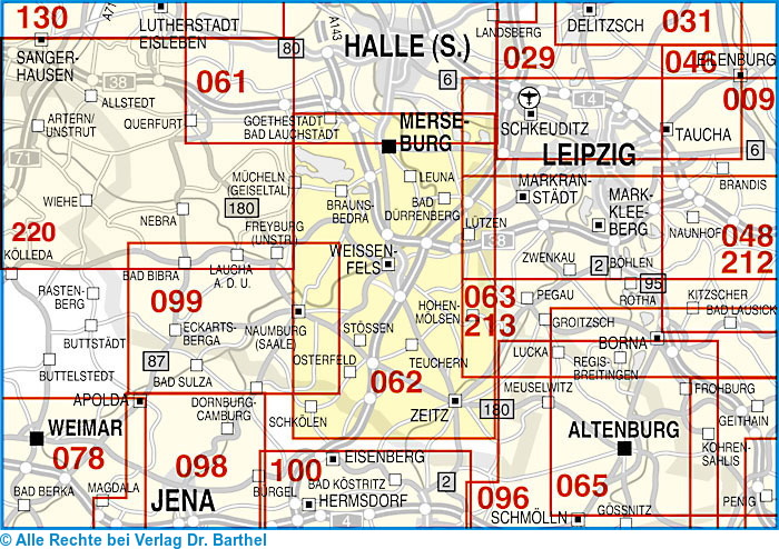 | Schlagworte | Elster-Radweg • Gartenträume • Geiseltalsee • Historischer Park • Jakobsweg • KTN/Karten, Stadtpläne, Atlanten/Deutschland • Landkarten • Leuna • Merseburg • Merseburg (Umgebung); Karten • Merseburg (Umgebung), Karte; Radkarte • Merseburg (Umgebung), Karte; Wanderkarte • Merseburg (Umgebung); Radkarten • Merseburg (Umgebung); Wanderkarten • Nessa-Radweg • Raßnitzer See • Rippach • Rippach-Radweg • Runstedter See • Saale • Saale; Karten • Saale, Karte; Radkarte • Saale, Karte; Wanderkarte • Saale; Radkarten • Saaletal • Saale; Wanderkarten • Sachsen-Anhalt • Stoßen • Straße der Romanik • Teuchern • Wallendorfer See • Wandern • Weißenfels • Weißenfels (Umgebung); Karten • Weißenfels (Umgebung), Karte; Radkarte • Weißenfels (Umgebung), Karte; Wanderkarte • Weißenfels (Umgebung); Radkarten • Weißenfels (Umgebung); Wanderkarten • Zeitz (Umgebung), Karte; Radkarte • Zeitz (Umgebung), Karte; Wanderkarte • Zeitz (Umgebung); Radkarten • Zeitz (Umgebung); Wanderkarten |