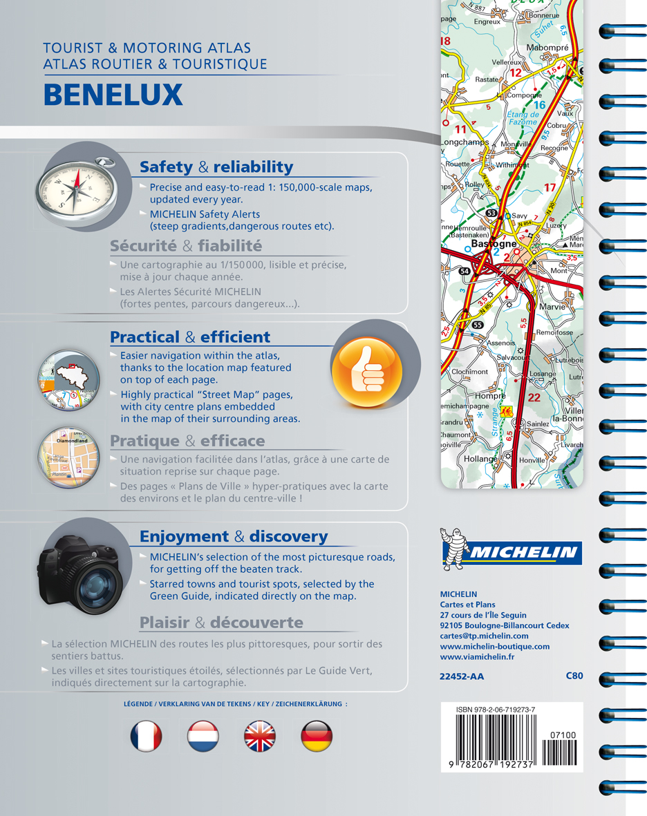 In addition to clear and accurate mapping, the Michelin motoring atlas Benelux and North of France will help you optimise and add comfort to your journey: