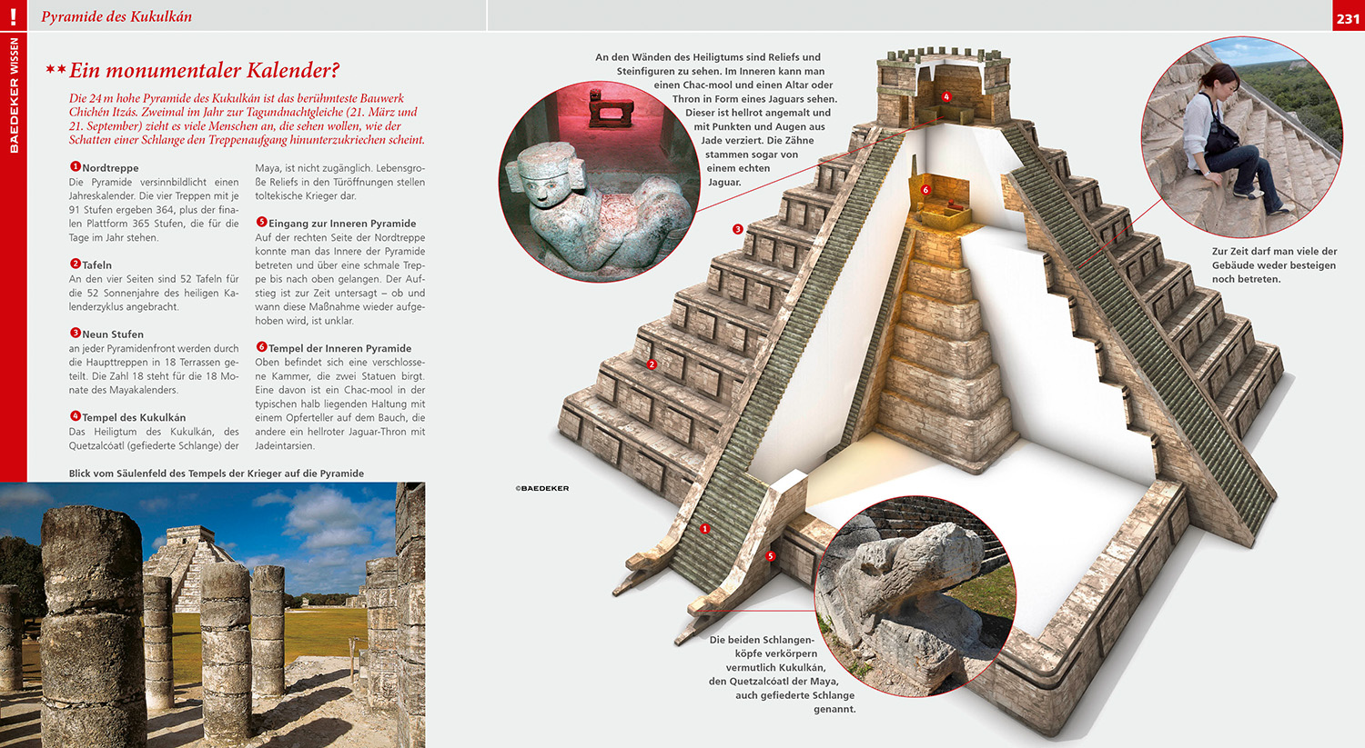 Infografiken erklären bildhaft u.a. Mexiko auf einen Blick, Präkolumbische Kulturen und gewaltige Gemälde. Einzigartige 3D-Darstellungen geben lebendige Einblicke in die Pyramide des Kukulkán, Templo Mayor und die Maya-Hauptstadt Palenque.