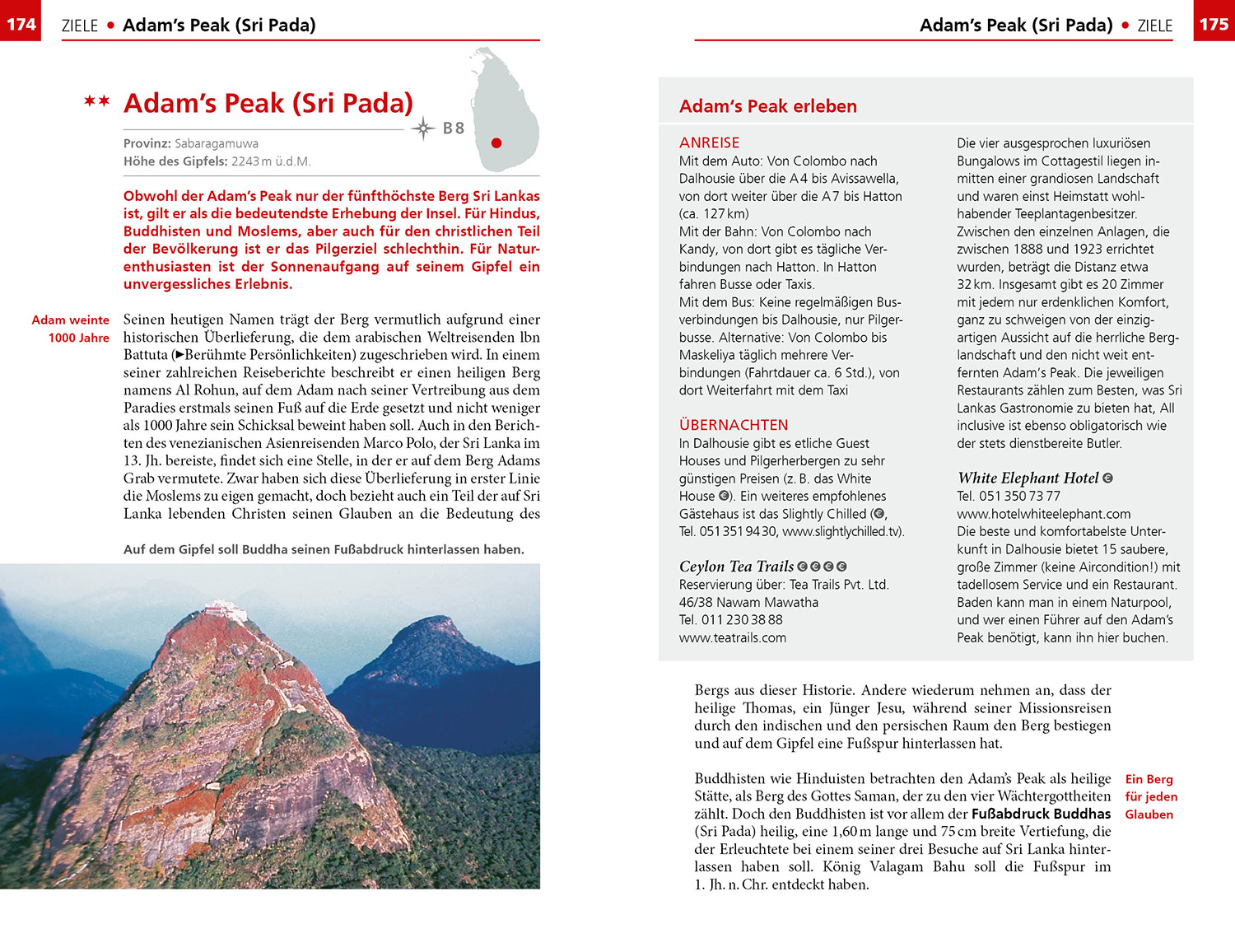 Die Baedeker-Tipps verraten, wo man die faszinierende Reise der Schmetterlinge beobachten kann, warum man sich das Erlebnis einer Bahnfahrt nach Kandy nicht entgehen lassen sollte, wo Männer im Kloster meditieren können und wo man auf Elefanten-Safari gehen kann.