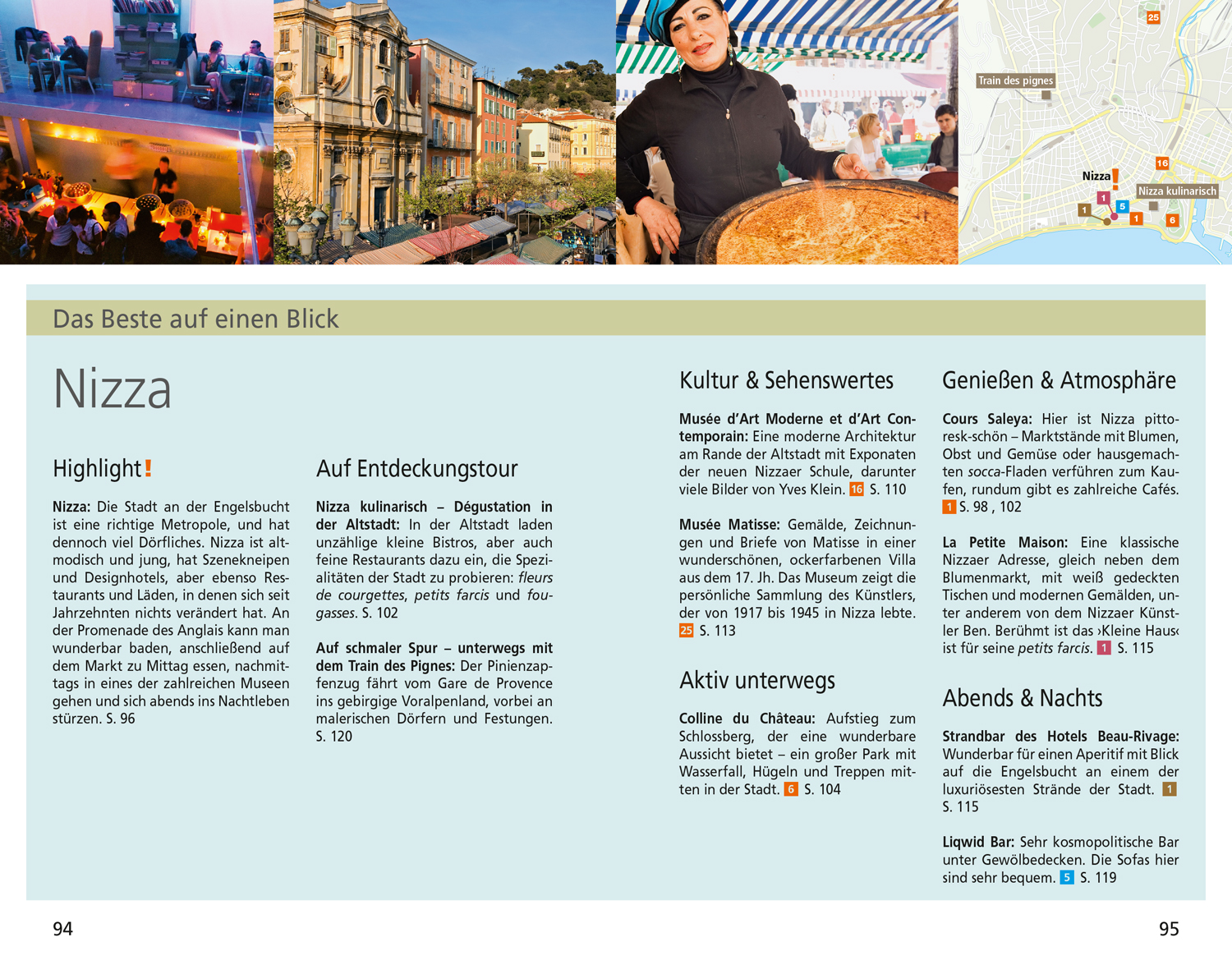 Côte d'Azur persönlich. Reiseinfos, Adressen, Websites. Magazinteil (Panorama) mit Daten, Essays, Hintergründen. Nizza. Die östliche Riviera und Monaco. Von Nizza nach Cannes. Im Hinterland von Cannes. Rund um Fréjus und St-Tropez. Die westliche Côte und Marseille. Sprachführer, Kulinarisches Lexikon. 37 Karten und Pläne plus eine separate Reisekarte im Maßstab 1:300 000.