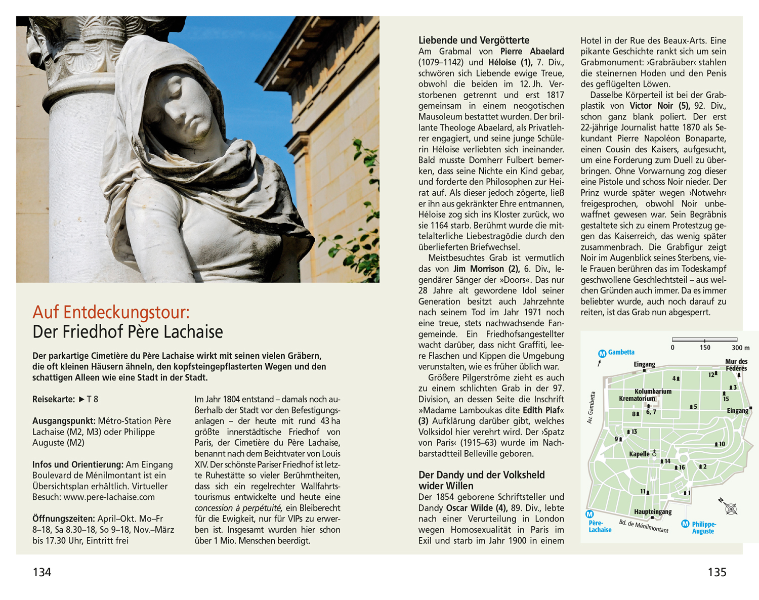 Paris persönlich. Reiseinfos, Adressen, Websites. Magazinteil (Panorama) mit Daten, Essays, Hintergründen. Notre-Dame und Seine-Inseln. Marais und Bastille. Quartier Latin. Saint-Germain-des-Prés. Trocadéro und Invalidendom. Louvre und Centre Pompidou. Champs-Élysées und Opéra. Montmartre. Montparnasse. Außerhalb des Zentrums. Sprachführer, Kulinarisches Lexikon. 36 Karten und Pläne plus eine separate Reisekarte im Maßstab 1:13.500.