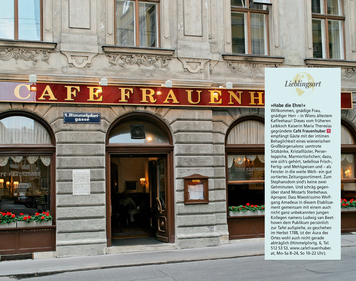 Wien persönlich. Reiseinfos, Adressen, Websites. Magazinteil (Panorama) mit Daten, Essays, Hintergründen. Westliche Innenstadt und Ringstraße. Östliche Innenstadt und Ringstraße. Das Wiental. Schloss Schönbrunn. Westliche und östliche Vorstadt. Heiligenstadt und Grinzing. Wiens Umland. Sprachführer, Kulinarisches Lexikon. 45 Karten und Pläne plus eine separate Reisekarte im Maßstab 1:14.500.