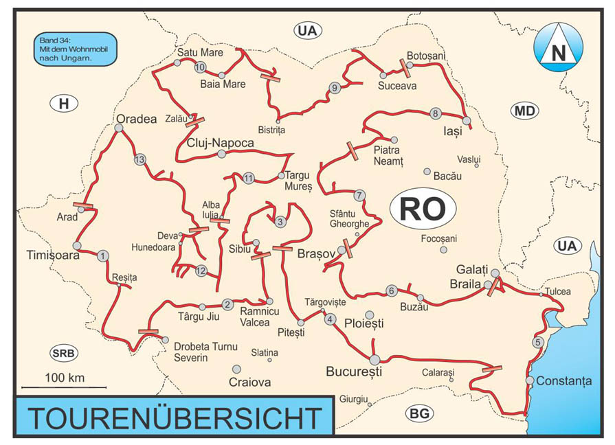 Auf über 6500 km und in 13 Touren zu allen bekannten und vielen unbekannten Sehenswürdigkeiten Rumäniens.