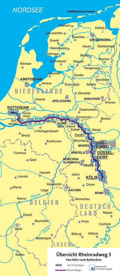 Fahrrad-Tourenkarte Rheinradweg 3, Von Köln nach Rotterdam