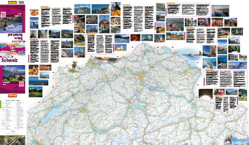 Ein neuartiges Produkt: Eine Strassenkarte mit Reiseführer und Fotos, also 3 in 1!Die übersichtliche Karte zeigt die ganze Schweiz im grossen Massstab 1:275 000 mit allen Städten, Orten und Strassen, landschaftlich schönen Strecken und Sehenswürdigkeiten. Das schnelle Auffinden der nummerierten Highlights wird durch die in der Karte eingetragenen Nummern sehr erleichtert.100 Highlights der Schweiz in Foto und kurzem Text vorgestellt. Gleiche Nummerierung von Foto, Text und Karte zeigt die Vernetzung aller Elemente und führt zusätzlich unterstützt durch ein Suchgitter zu schnellem Aufsuchen. Die Highlights sind ausgewählt aus Kunst, Kultur, Landschaft, Lebensart und kulinarischen Genüssen.Ein zusätzliches Namensverzeichnis erleichtert das Aufsuchen der grössten und wichtigsten Orte der Schweiz.Ein QR-Code erlaubt Zugriff zu weiteren Informationen und Videos unter www.myswitzerland.com