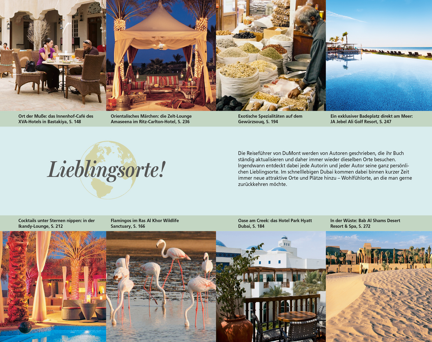 Wo noch vor drei Generationen die Perlenfischer in einfachen Ansiedlungen wohnten, ragt heute mit dem Burj Kalifa ein Weltrekord- Wolkenkratzer in den Himmel. Und doch halten die Emirati an vielen ihrer Traditionen fest. Deshalb empfiehlt Autor Gerhard Heck Dubai-Neulingen eine Fährfahrt auf dem Dubai Creek entlang der historischen Gebäude und Moscheen hinüber zu den gläsernen Fassaden der Hochhäuser. Weitere Entdeckungstouren führen zum Pferderennen auf der Meydan-Bahn, zum Kamelmarkt in Al Ain im Nachbaremirat Abu Dhabi oder ins weltberühmte Hotel Burj Al Arab. Für Stopover-Reisende hat der Autor die interessantesten und neuesten Plätze von künstlichen Inselwelten bis zum arabischen Gewürzmarkt zusammengestellt. Wo sind die besten Restaurants mit Ausblick? Wohin geht man zum Einkaufsbummel? An welchem Strand kann man gebührenfrei baden? Welche visionären Projekte entstehen gerade? Im neuen DuMont Reise-Taschenbuch Dubai verrät der Autor auch seine ganz persönlichen Lieblingsorte: Orientalische Märchen erleben Gäste in der Zelt-Lounge Amaseena im Ritz- Carlton-Hotel, und Luxus mitten in der Wüste bietet das Bab Al Shams Desert Resort & Spa. Online-Updates zum Buch sowie Extratipps des Autors finden Leser auf www.dumontreise.de/dubai.