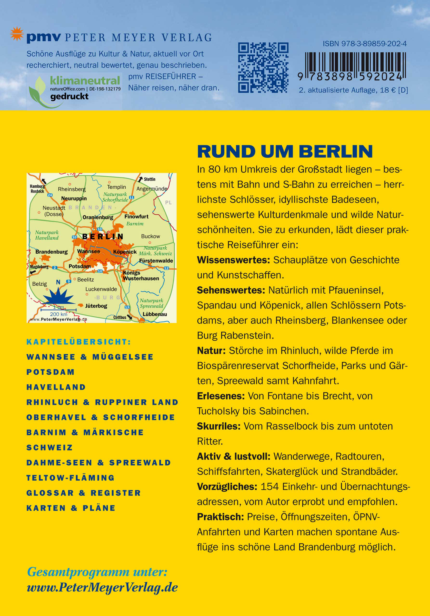 Zu genau 77 schönsten Orten rund um Berlin kommen historisch Interessierte und aktive Kulturgenießer, wenn sie sich mit diesem pmv-Freizeitführer aufmachen. Wolfgang Kling führt von Neuruppin bis Fürstenwalde, von Angermünde bis Lübbenau zu 190 Sehenswürdigkeiten wie Schlössern, Badeseen und Wäldern, zu Museen oder Industriedenkmälern. Dabei kommen Sie durchaus auf Tour: beim Spaziergang, auf der tollen Fläming-Skaterstrecke, beim Rudern und Paddeln oder bei 15 ausgedehnten Rad- und Wandertouren! Die Anstrengungen des Ausflugs werden mit 154 Einkehr-Tipps belohnt. Kling, ein versierter Literaturkenner, verknüpft dabei interessante Storys mit Kulinarischem. So führt beim durch Tucholsky berühmt gewordenen Schloss Rheinsberg kein Weg an Fontanes Lieblingsgericht vorbei: Alt-Brandenburger Schmorbraten in Ingwersoße mit Apfelrotkohl und Kartoffelklößen.Zu allen Touren gibt es praktische Infos wie Öffnungszeiten, Preise, Verkehrsverbindungen und ein Kartenatlas mit allen Bahnstrecken. Themenkästen zu Wissen um Sehenswürdigkeiten und Geschichte, Einkaufstipps, Hinweise zu Festen und Musikveranstaltungen sowie Hotel- oder Wellness-Empfehlungen vervollständigen das Buch. Alles, was das Berliner Umland zu bieten hat!