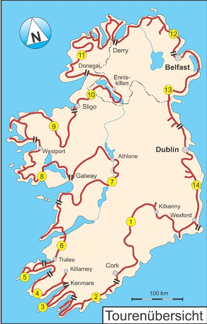 Fast 5000 km in 14 Touren auf der 'Grünen Insel' unterwegs.