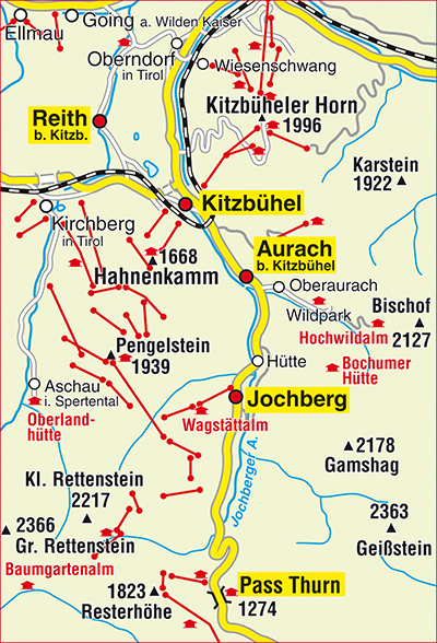 - Die Region rund um die legendäre "Gamsstadt" Kitzbühel (rund 8000 Einwohner) punktet im Sommer mit einem 1000 km langen betreuten Wanderwege-Netz in den weiten Almgebieten der Kitzbüheler Grasberge und den schroffen Felsen des Wilden Kaiser.