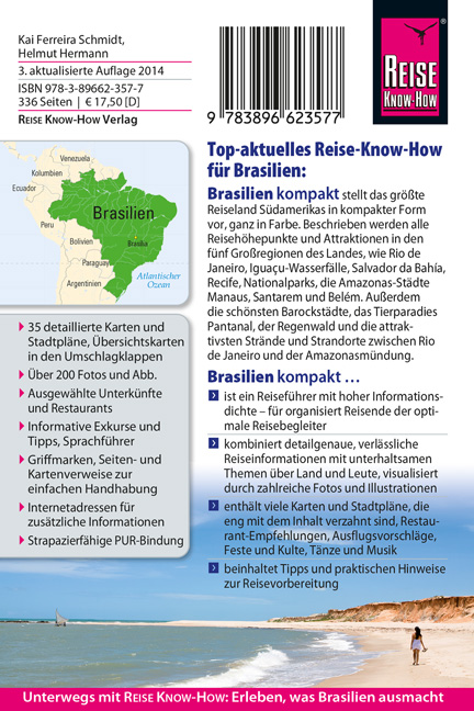 Der Reiseführer 'Brasilien kompakt' aus dem Reise Know-How Verlag stellt das größte Reiseland Südamerikas in kompakter Form vor, ganz in Farbe. Hohe Informationsdichte und aktuelle praktische Tipps machen das Buch zum optimalen Begleiter für organisiert Reisende.