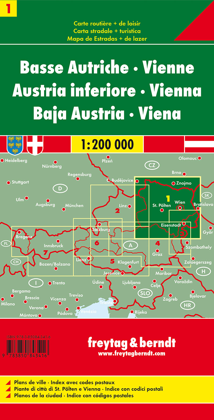 Details: Citypläne von Wien und St. Pölten, GPS-tauglich, Ortsregister mit Postleitzahlen, Freizeitführer.