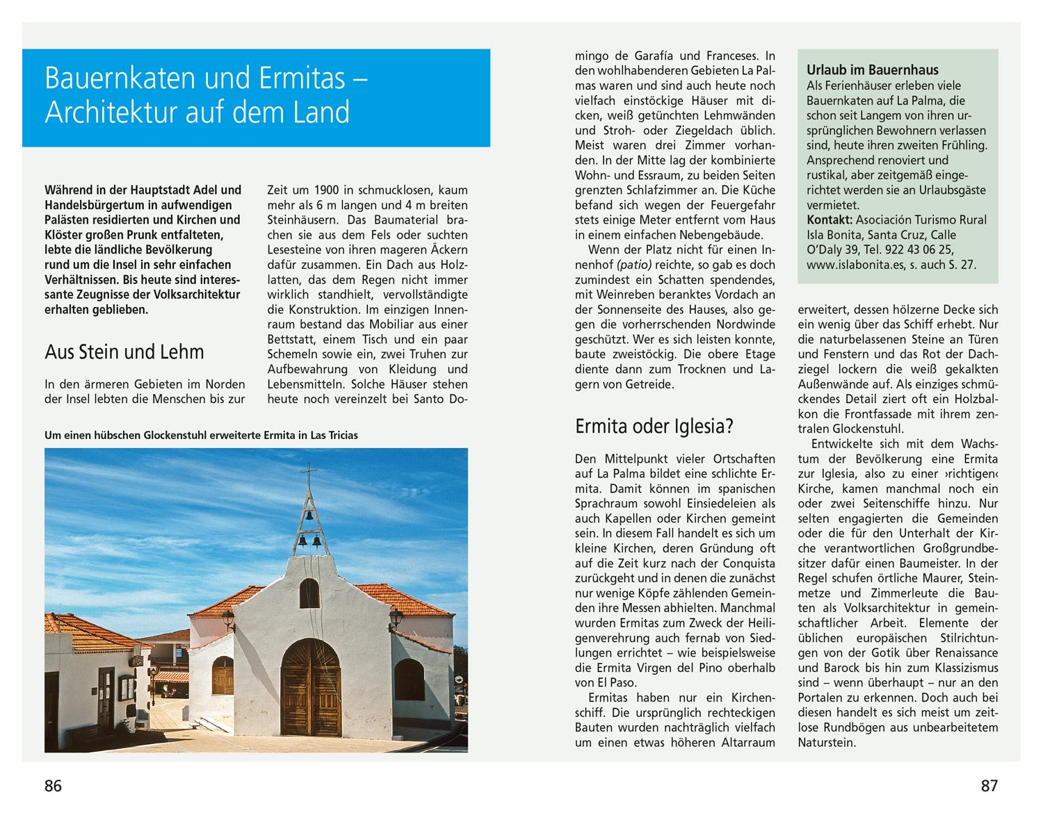 Zu den besonderen Lieblingsorten der Autorin gehört die urige Taverna del Puerto am Hafen von Tazacorte oder die kleine Einsiedelei Ermita del Pino in den Bergen im Inselinneren. Ungewöhnliche Entdeckungstouren führen zu den Weinbergen an den Hängen des Volcán San Antonio oder zu den rätselhaften Steinritzungen im Kulturpark La Zarza.