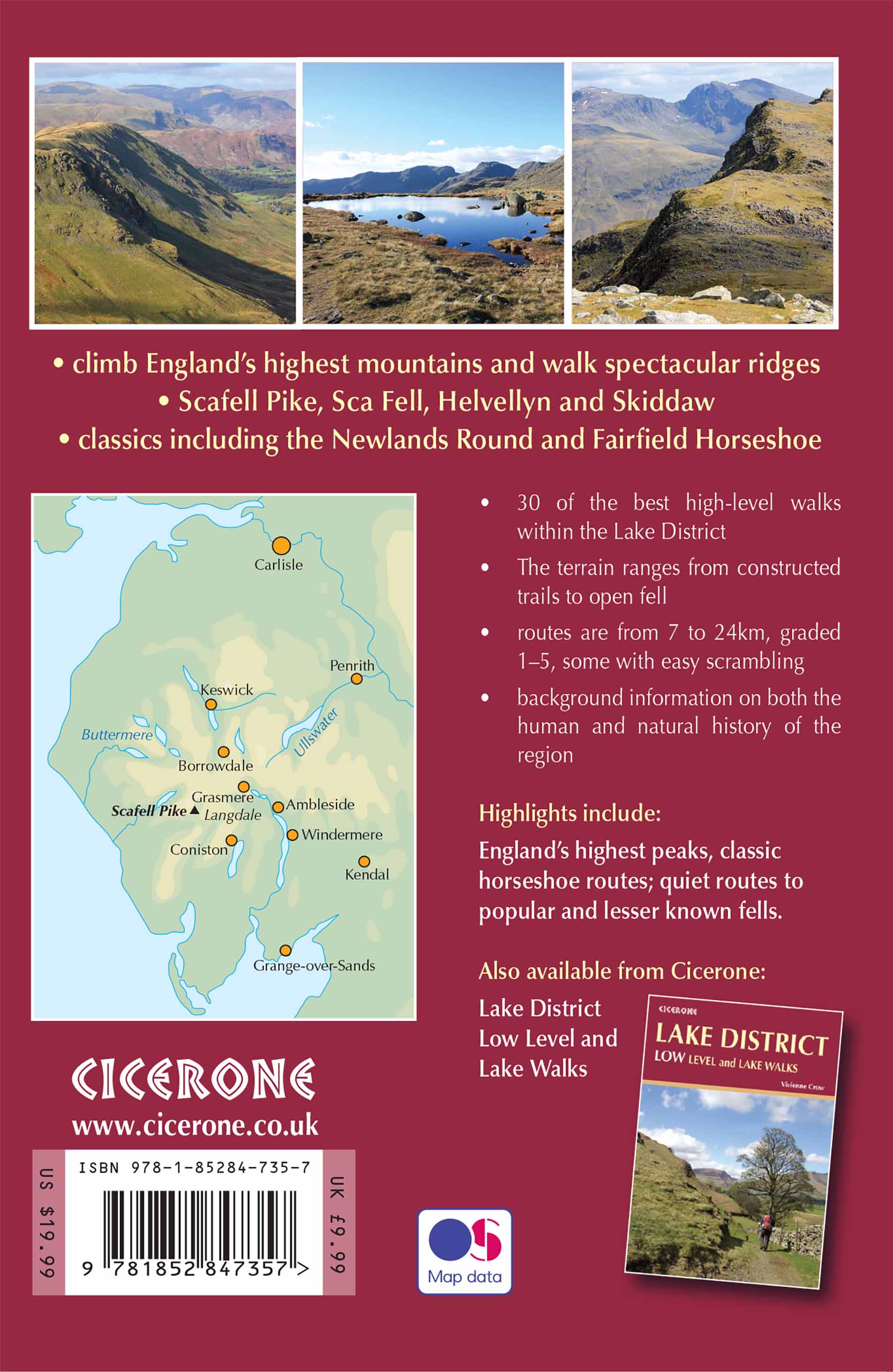 The 30 walks are divided into 6 sections, covering the best walking in the Lake District: the Keswick area, Borrowdale and Buttermere, the Western Valleys, Coniston and Langdale, Ambleside, Grasmere and Windermere, or Ullswater. From 7-23km and graded for difficulty, the walks combine Lakeland classics with lesser-known adventures. From classic horseshoes, such as the Newlands Round and the Fairfield Horseshoe, and traditional ascents of England's most iconic mountains, including its highest peaks Scafell Pike, Scafell, Helvellyn and Skiddaw, to routes onto some of the quieter summits including Gray Crag and Beda Fell, or quieter routes onto popular fells including Blencathra and Red Screes.