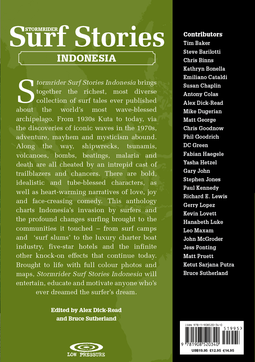 Shipwrecks, tsunamis, volcanoes, bombs, beatings, malaria and death are all cheated by an intrepid cast of trailblazers and chancers, but it's not all danger and mayhem as there are also some heart-warming narratives of love, joy and face-creasing comedy. This compendium of Stormrider Surf Stories will delight both the road-weary Indo traveller and the inquisitive intern, looking for a good ol' yarn to read during the next flat spell.