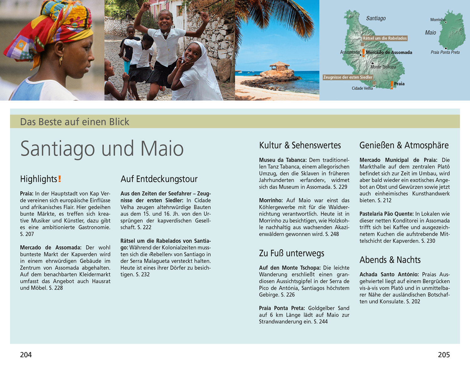 Kapverdische Inseln persönlich. Reiseinfos, Adressen, Websites. Magazinteil (Panorama) mit Daten, Essays, Hintergründen. Sal. Boavista. São Vicente und São Nicolau. Santo Antão. Santiago und Maio. Fogo und Brava. Sprachführer, Kulinarisches Lexikon. 33 Karten und Pläne plus eine separate Reisekarte im Maßstab 1:350.000.