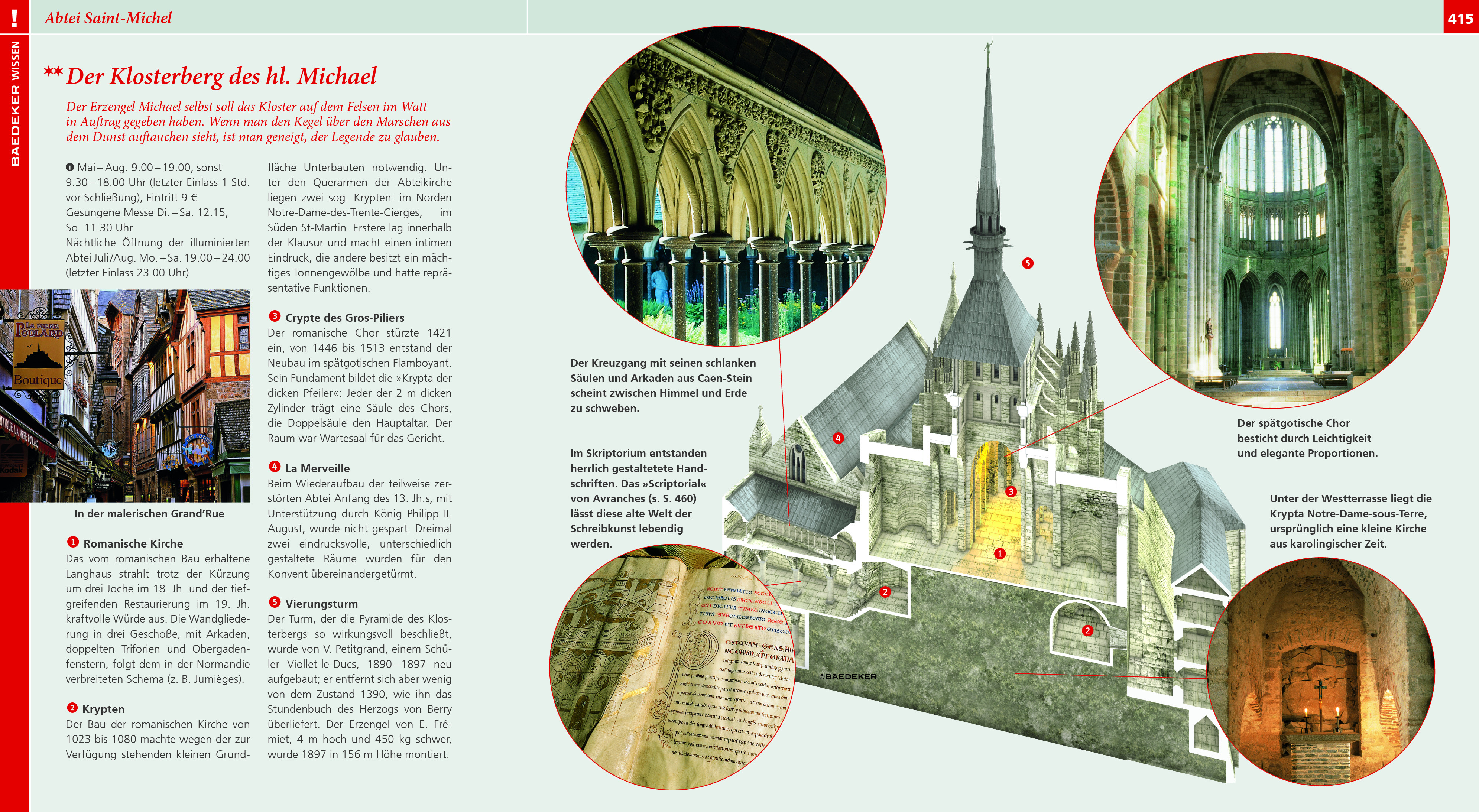 Einzigartige 3D- Darstellungen geben anschauliche Einblicke in ausgesuchte Bauwerke wie z. B.: die Abtei St-Michel, Notre-Dame de Paris und Schloss Versailles.