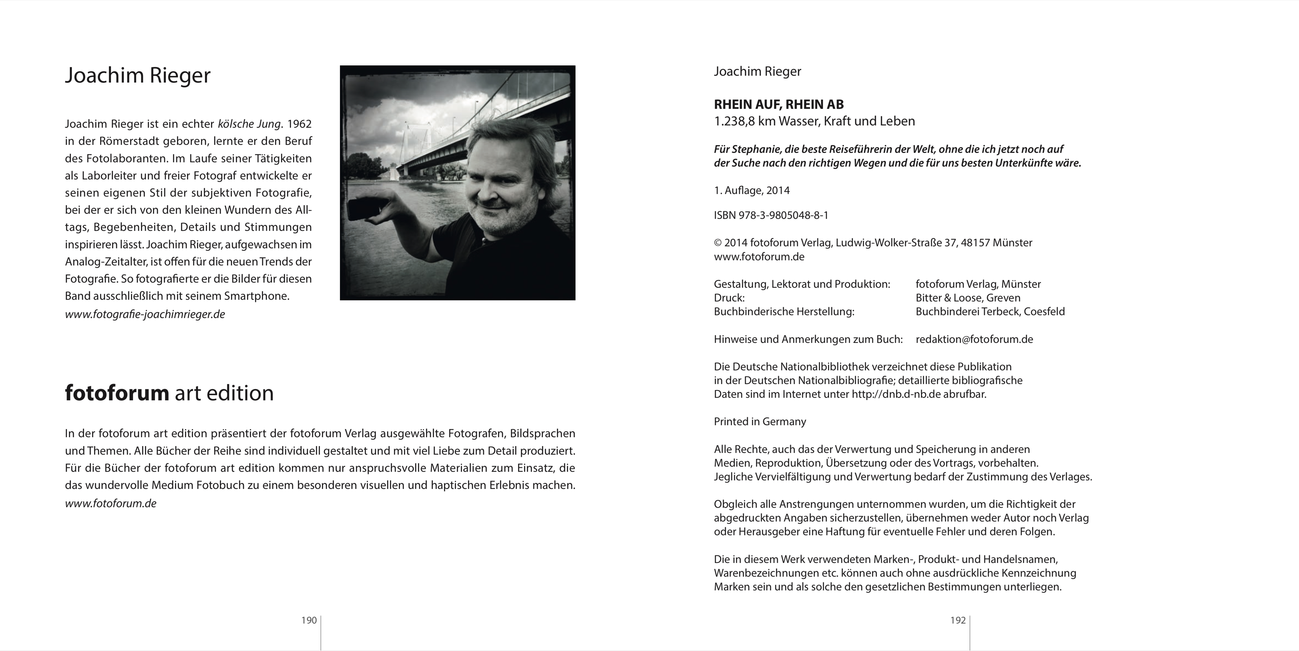 Joachim Rieger ist ein echter kölsche Jung. 1962 in der Römerstadt geboren, lernte er den Beruf des Fotolaboranten. Im Laufe seiner Tätigkeiten als Laborleiter und freier Fotograf entwickelte er seinen eigenen Stil der subjektiven Fotografie, bei der er sich von den kleinen Wundern des Alltags, Begebenheiten, Details und Stimmungen inspirieren lässt. Joachim Rieger, aufgewachsen im Analog-Zeitalter, ist offen für die neuen Trends der Fotografie. So fotografierte er die Bilder für diesen Band ausschließlich mit seinem Smartphone.