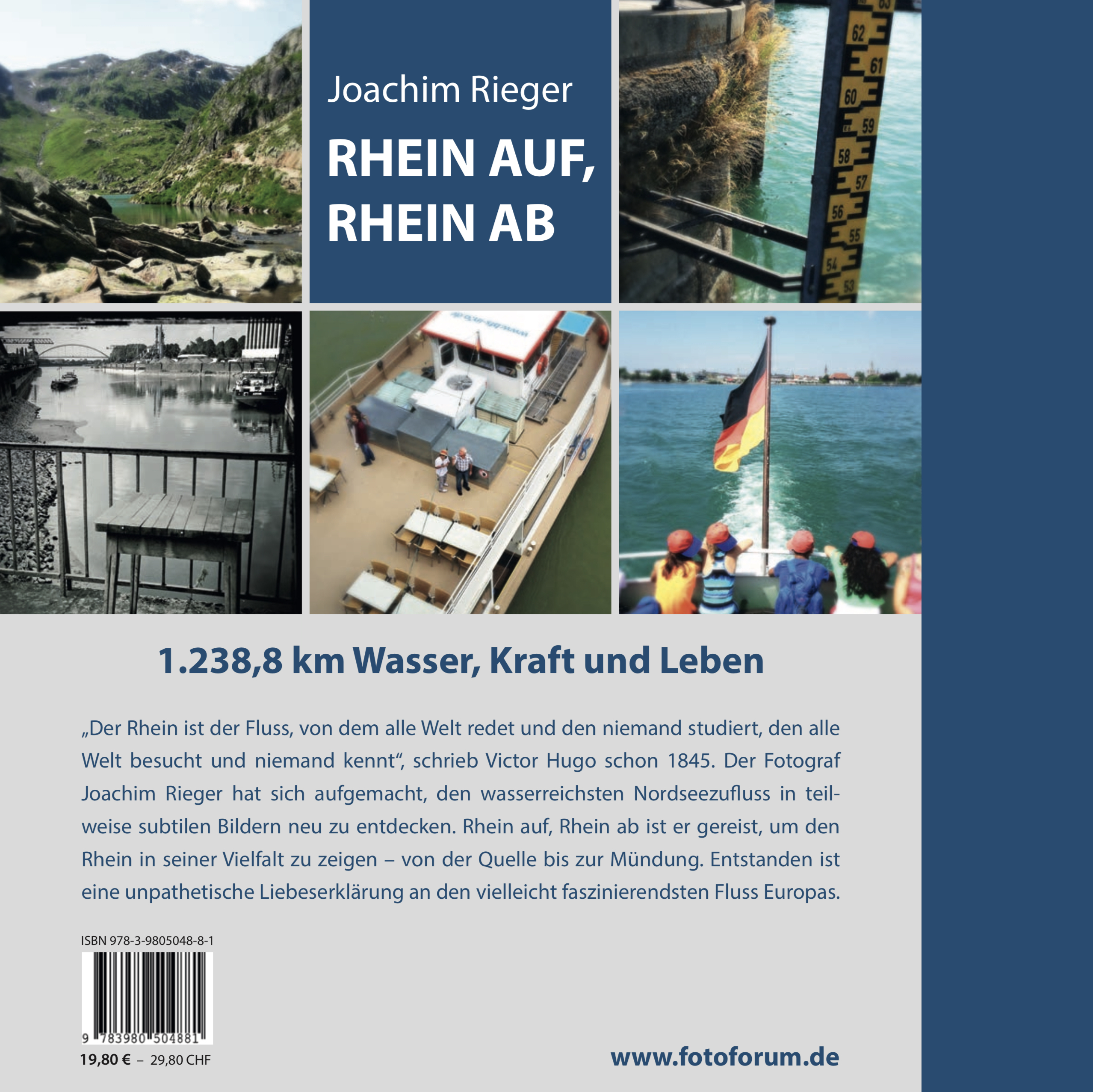 „Der Rhein ist der Fluss, von dem alle Welt redet und den niemand studiert, den alle Welt besucht und niemand kennt“, schrieb Victor Hugo schon 1845. Der Fotograf Joachim Rieger hat sich aufgemacht, den wasserreichsten Nordseezufluss in teilweise subtilen Bildern neu zu entdecken. Rhein auf, Rhein ab ist er gereist, um den Rhein in seiner Vielfalt zu zeigen – von der Quelle bis zur Mündung. Entstanden ist eine unpathetische Liebeserklärung an den vielleicht faszinierendsten Fluss Europas.