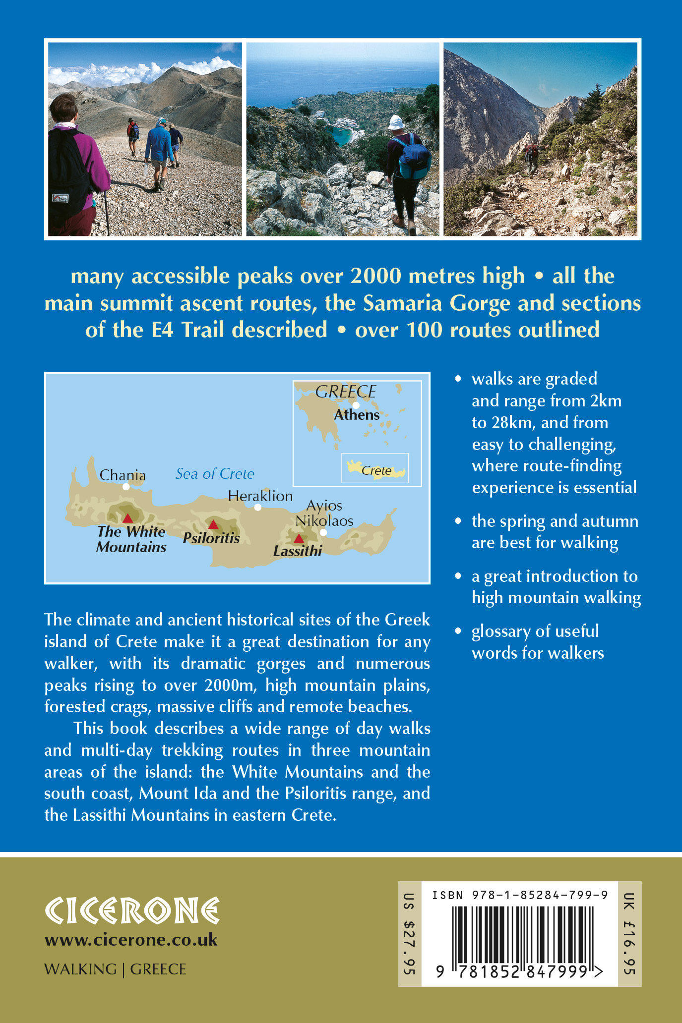 A guidebook to 82 day walks and 10 treks in Crete’s high mountains. Exploring the beautiful scenery of Greece’s largest island, the routes are suitable for walkers of all levels, from beginners to experienced hikers.