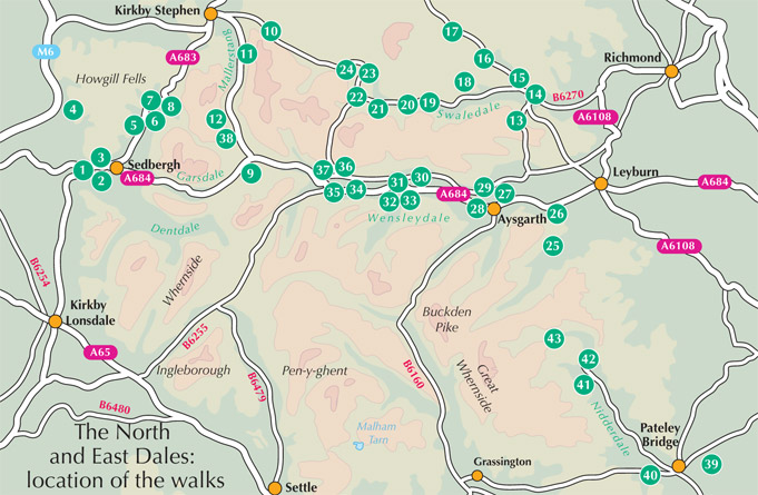 The walks, all easily accessible from Kirkby Stephen, Sedburgh, Pateley Bridge and Aysgarth, range from 5 to 19km (3–12 miles) and can be enjoyed in 2–5 hours. Several walks can be combined with another to create a longer route.