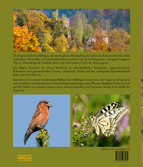 | Schlagworte | Amphibien • Auerhahn • Berge • Bildband • Dreizehenspecht • Flora und Fauna • Frankreich • Frankreich, Vogesen, Mittelgebirge, Natur, Tiere, Pflanzen, Flora, Fauna, Foto, Bildband, Fotografie, Gämse, Naturbildband, Reise, Naturpark, Säugetier, Reptilien, Amphibien, Schmetterlinge, Wasserfall, See, Moore, Makro, Orchidee, Auerhahn, Berge • Gämse • Mittelgebirge • Moore • Natur • Naturbildband • Naturpark • Orchideen • Reise • Reptilien • Säugetiere • Schmetterlinge • Seen und Wasserfälle • Tiere und Pflanzen • Vögel • Vogesen • Vogesen; Bildband • Vogesen; Führer • Vogesen; Natur |