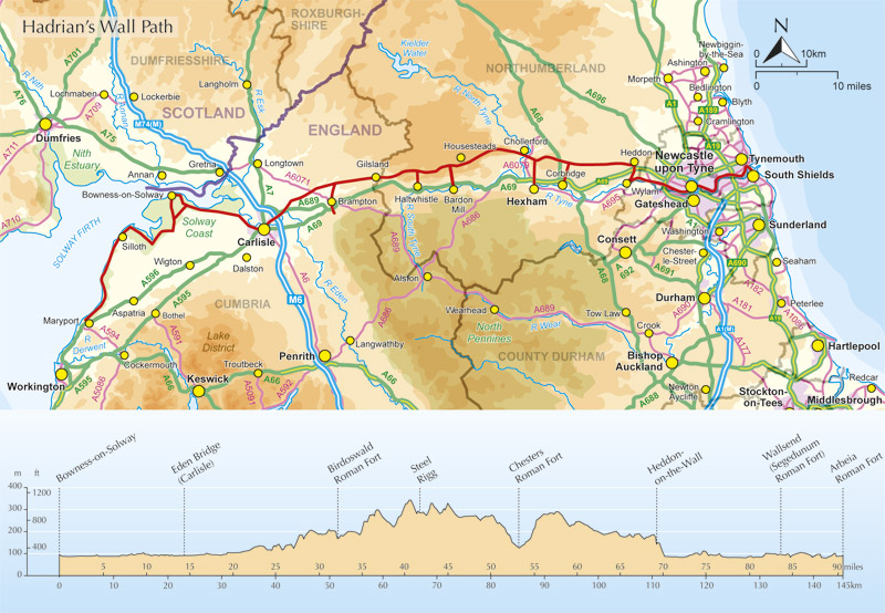 The trail is presented here in 10 stages, with suggestions for five and eight-day itineraries. It is suitable for beginners, although a reasonable level of fitness is required if doing it as a multi-day walk. The route is described both west to east and east to west, and the guidebook also features extensions to Maryport on the far west coast of Cumbria and to South Shields on the east coast.