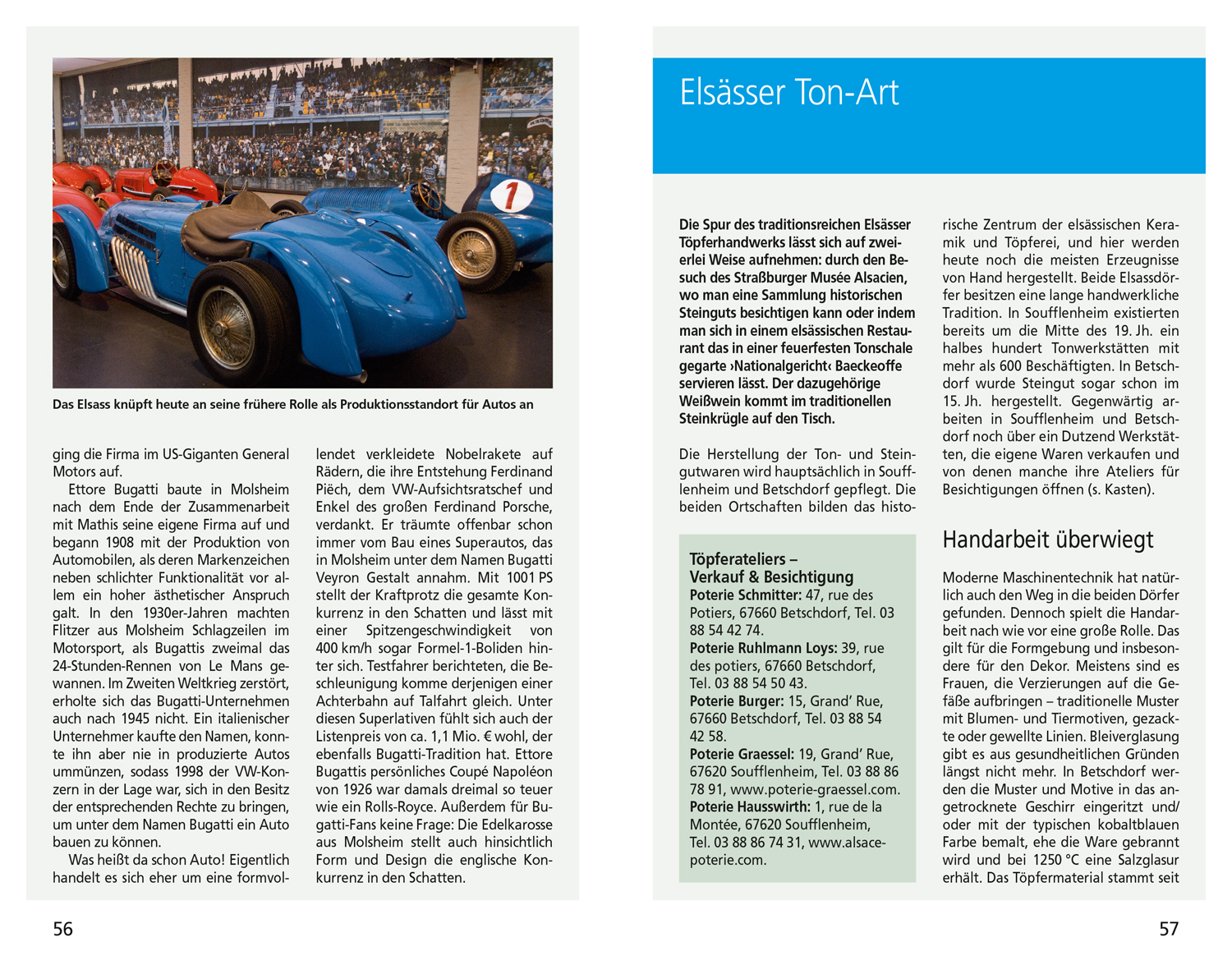 In der aktuellen Auflage hält der Autor nicht nur neue kulinarische Tipps bereit, sondern auch kulturelle, so eine Gedenkstätte in Schirmeck und das Barockschloss von Mutzig. Manfred Braunger nimmt den Leser mit auf Entdeckungstour ins Schiffshebewerk im elsass-lothringischen Grenzgebiet, zu den schönsten mittelalterlichen Burgen, mit denen das Elsass reich gesegnet ist, oder zur Abteikirche Ottmarsheim, eine der ältesten Sakralbauten der Region mit achteckigem Grundriss. Zu den besonderen Lieblingsorten des Autors gehören der idyllische Rhein-Rhône-Kanal in Plobsheim, der bunte Lebensmittelmarkt in Mulhouse und das trutzige Gotteshaus in Hunawihr inmitten von Weinbergen.