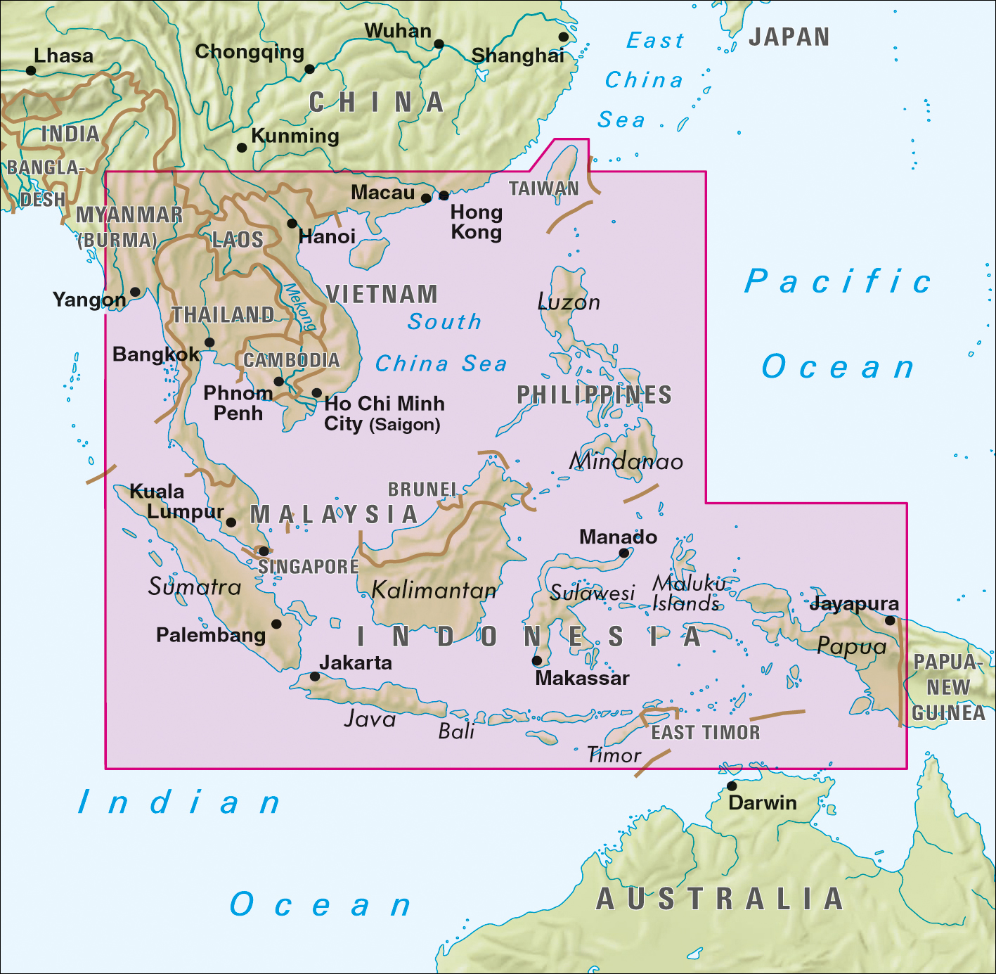 | Schlagworte | Brunei • Indonesien • Kambodscha • Landkarte Südostasien • Laos • Malaysia • Ost-Timor • Philippinen • reiß- und wasserfest • Singapur • Südostasien, Karte • Südostasien; Karten • Taiwan • Thailand • Vietnam |